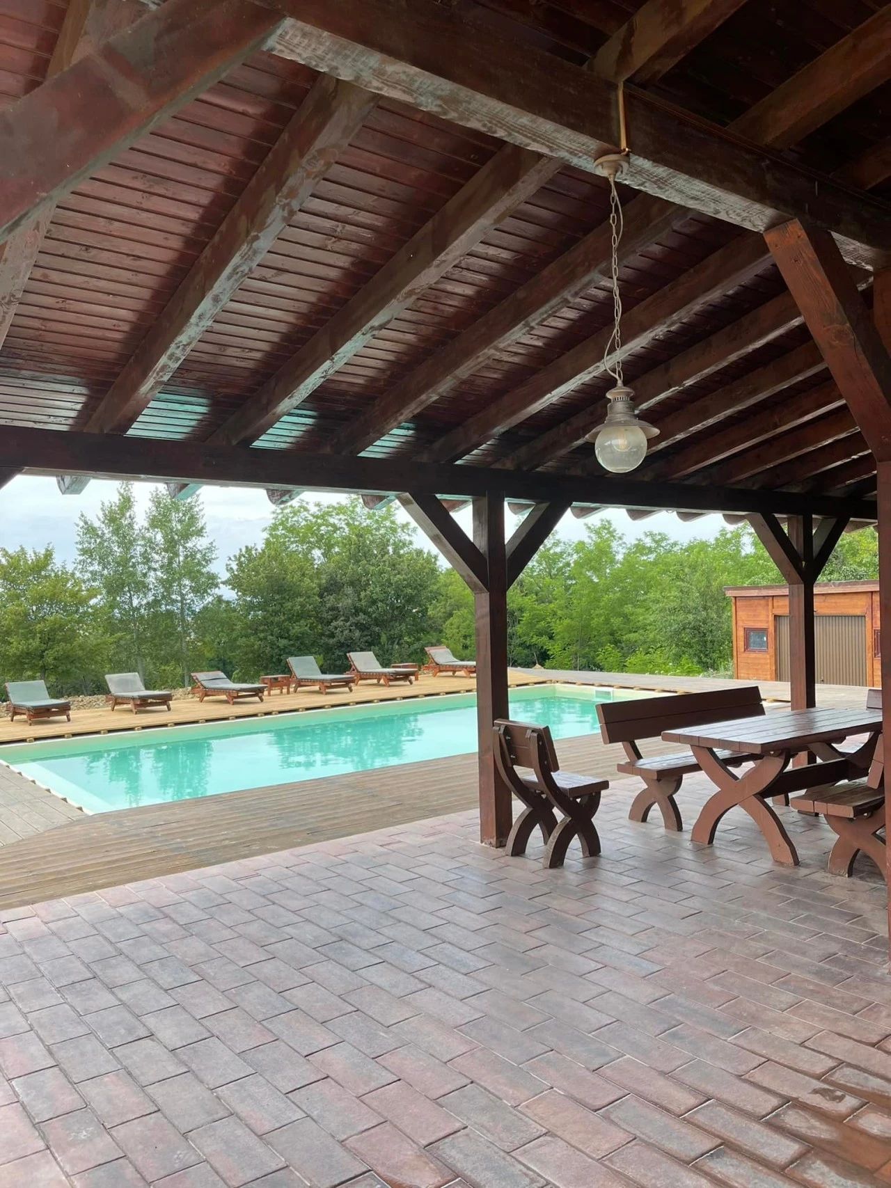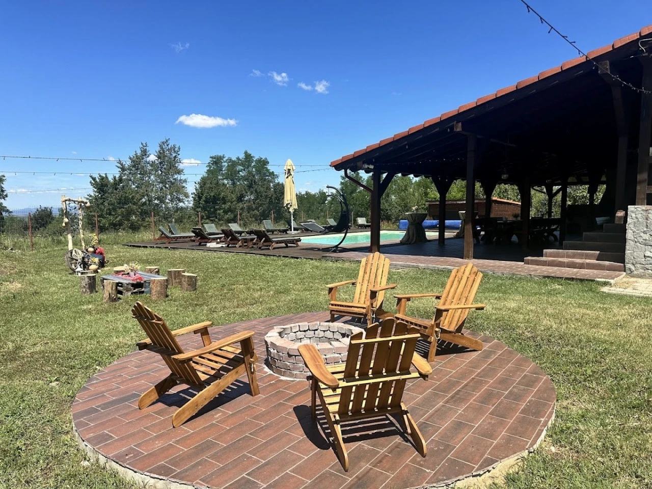 - Terasă acoperită cu mese și scaune – perfectă pentru serile petrecute în compania prietenilor.