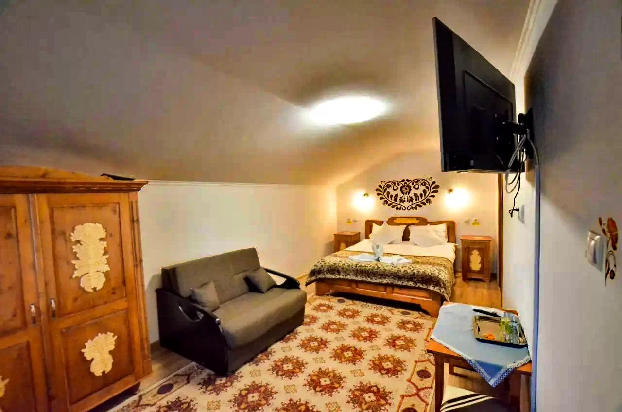 - 1 camera tripla (pat matrimonial, canapea extensibilă), baie proprie si balcon