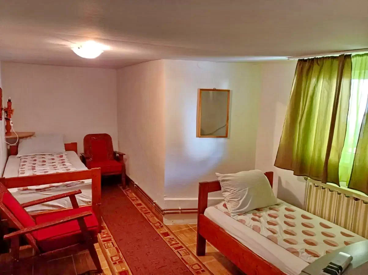 - 1 camera dubla (2 paturi de o persoana care nu pot fi unite), baie proprie