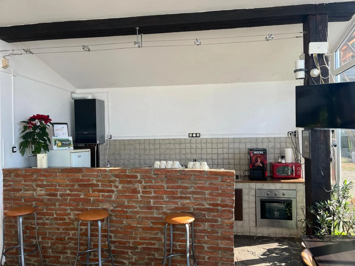 - Tarifele pensiunii includ doar cazarea, însă oaspeții au la dispoziție o bucătărie comună complet utilată (aragaz, cuptor, microunde, cafetieră, fierbător de apă, vase), unde își pot prepara mesele preferate.