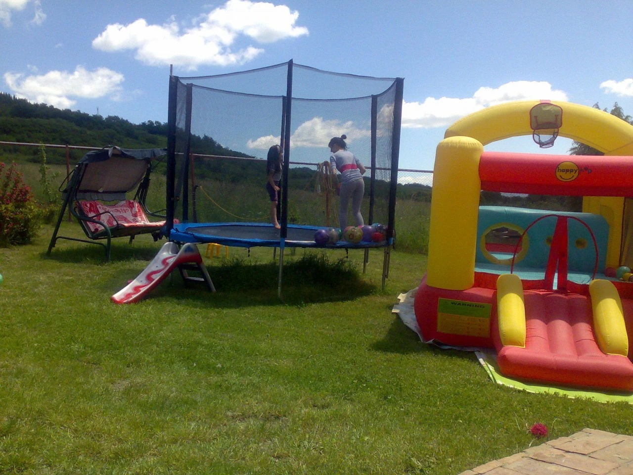 - Grădina mare oferă piscină exterioară, loc de joacă, trambulină, grătar și terasă pentru plajă.