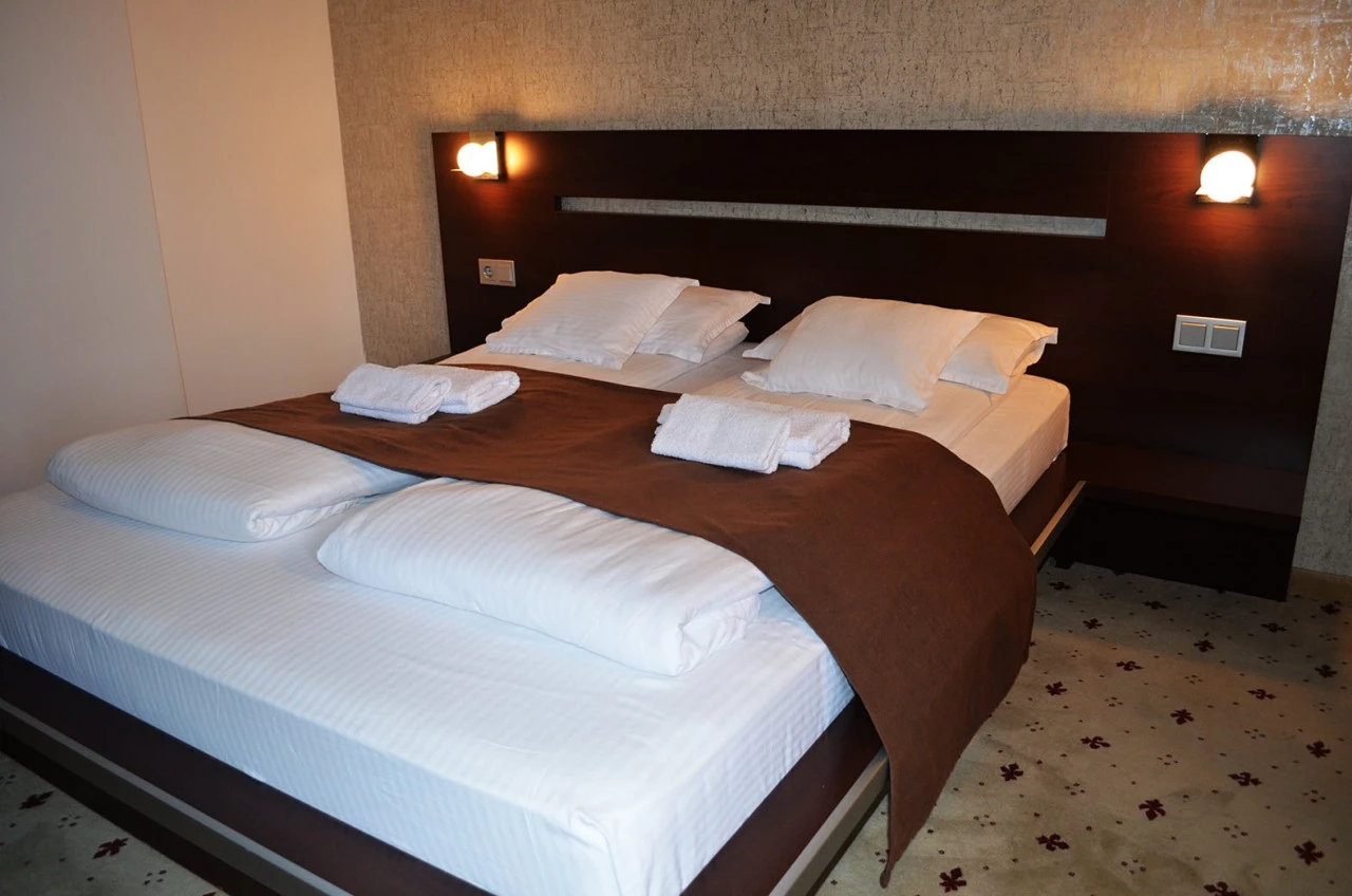 - Toate camerele sunt amenajate cu mobilier premium, în tonuri calde și elegante, pentru ca oaspeții să se simtă ca acasă.
