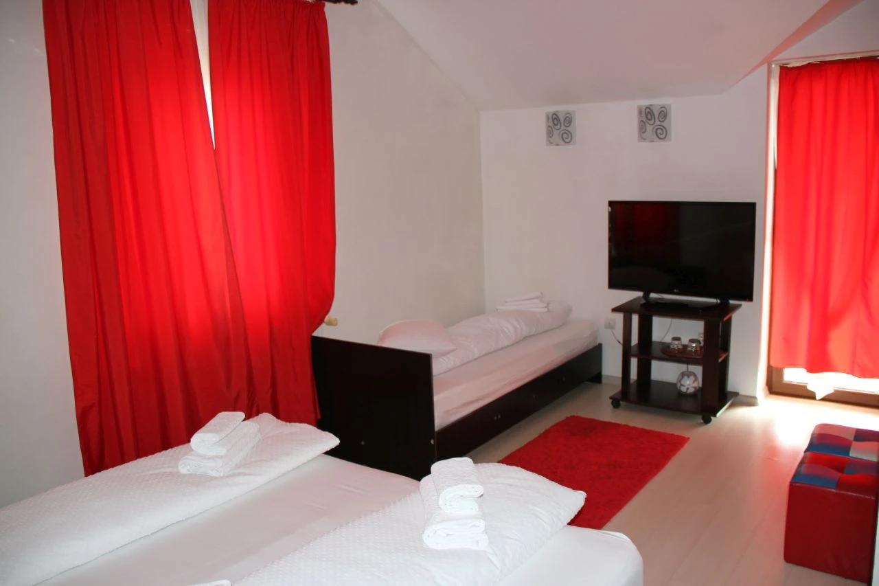 Pensiunea poate găzdui 12 adulți și 2 copii în 5 spații de cazare: