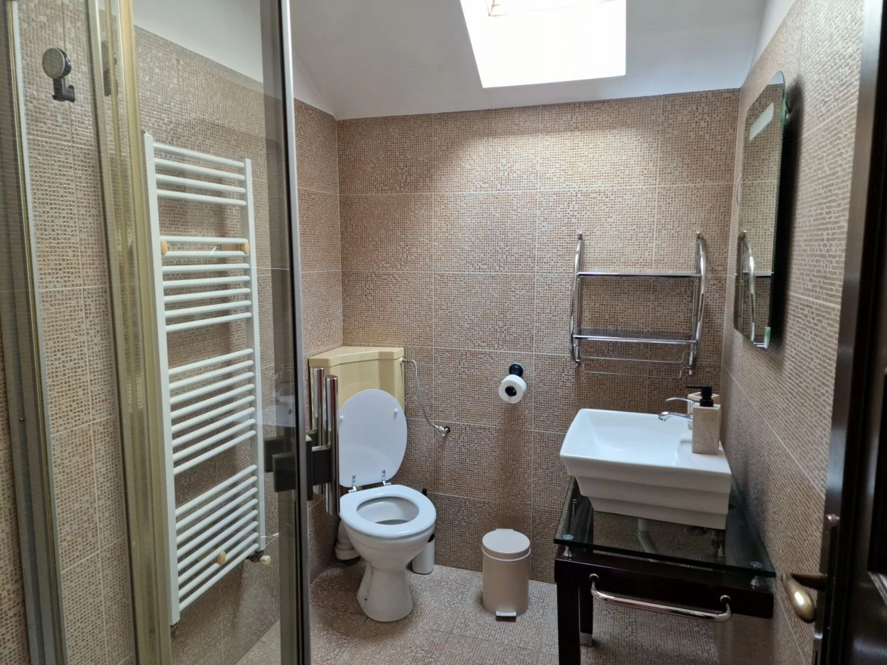 Facilități exterioare: Terasă acoperită generoasă (12 persoane), zonă special amenajată pentru fumat.