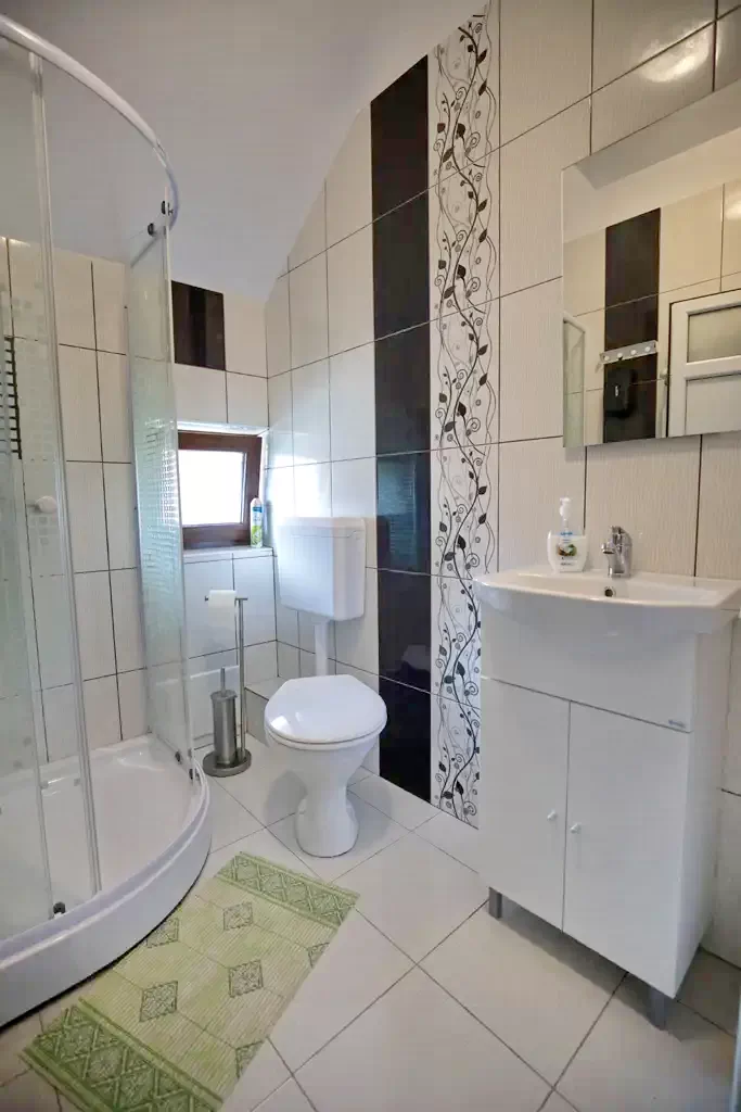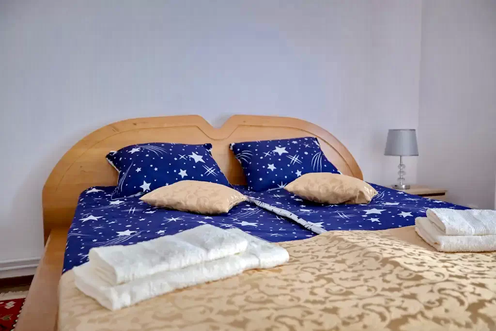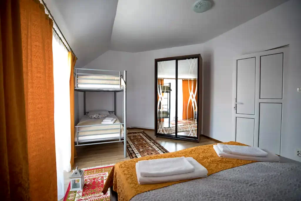 - 1 cameră de 5 persoane (pat matrimonial + pat de o persoană + pat supraetajat)