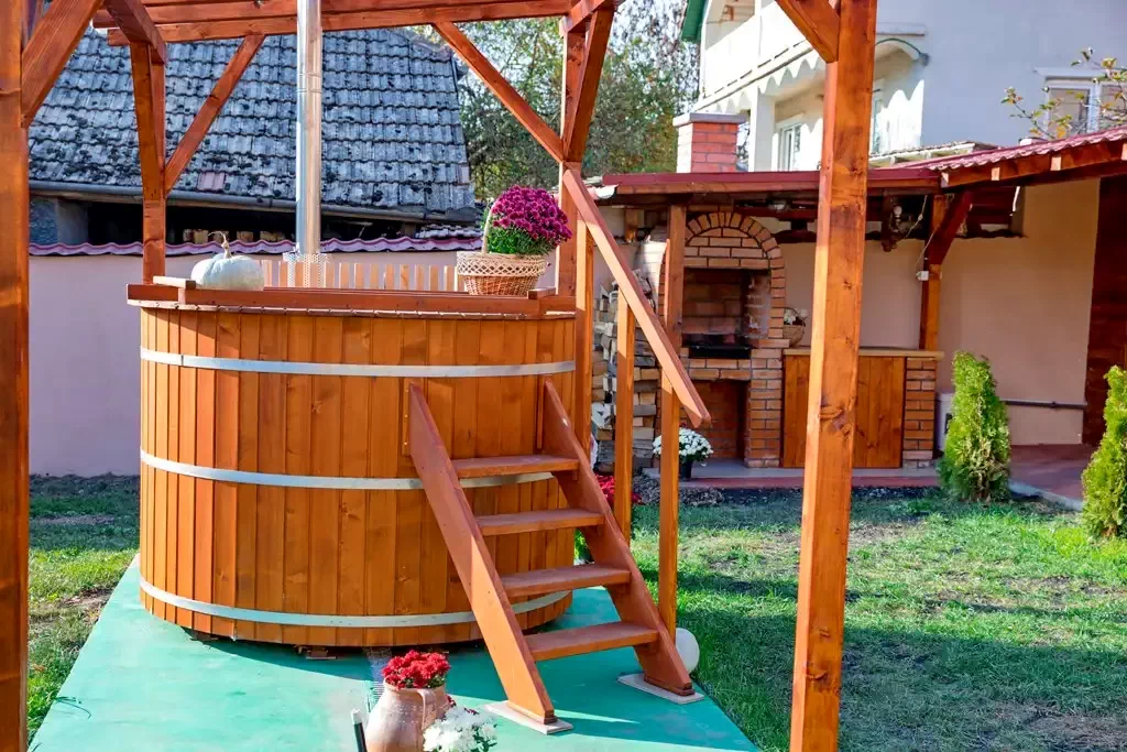 - În curte, oaspeții au la dispoziție un ciubăr, posibilități de grătar și ceaun.