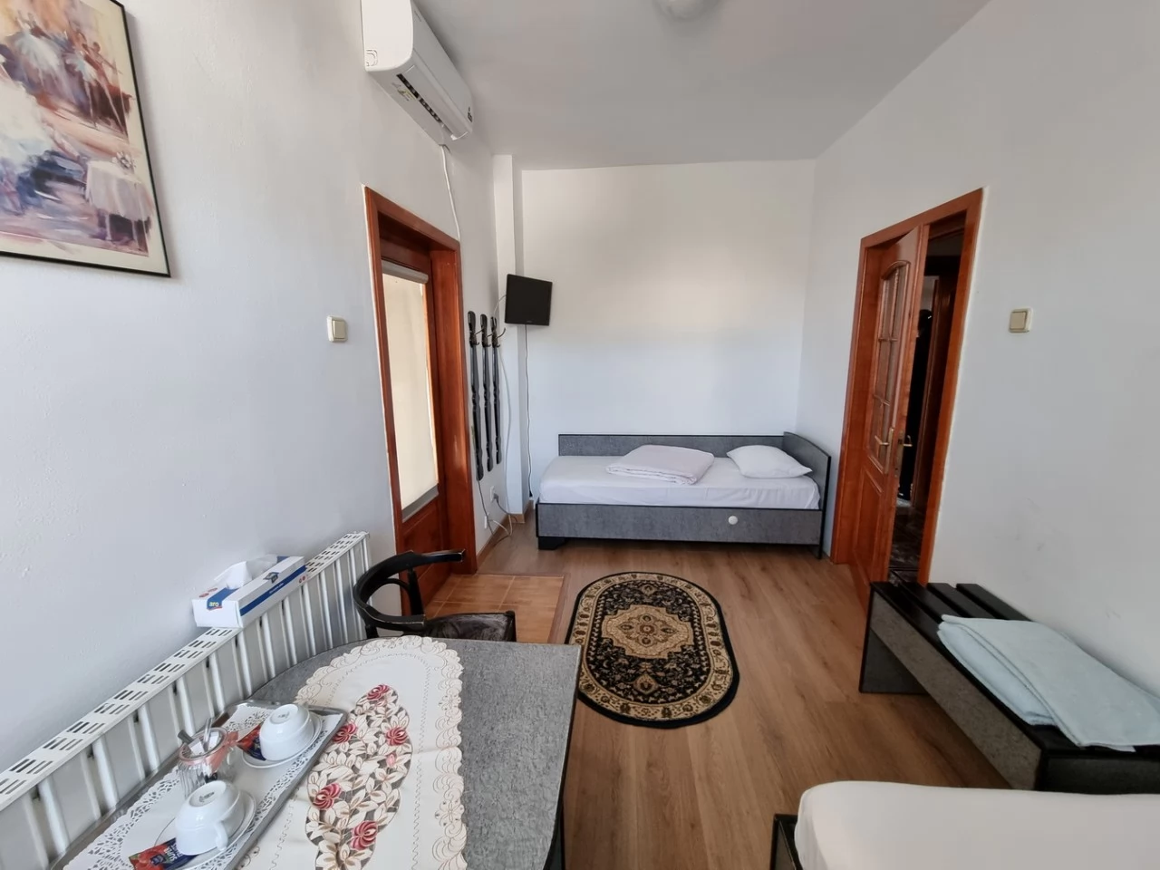 - 1 apartament mare: 2 dormitoare, 1 camera de zi cu canapea, 1 baie, TV in camere