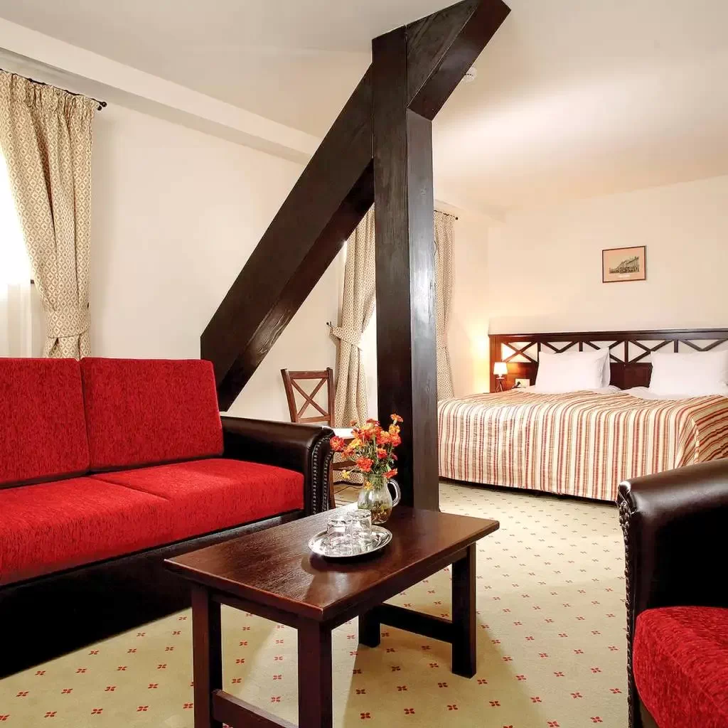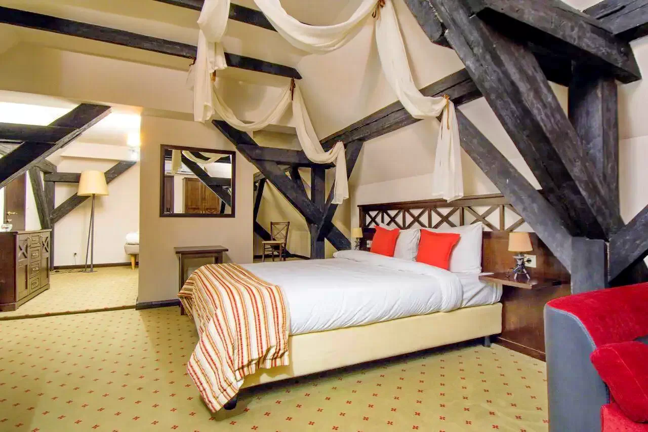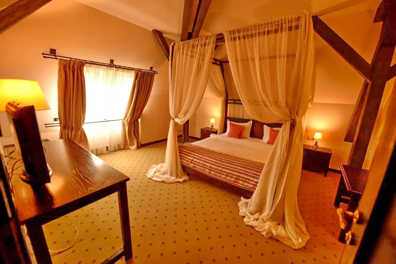 - 1 apartament matrimonial DeLuxe cu pat matrimonial cu baldachin si salon/2 pers.