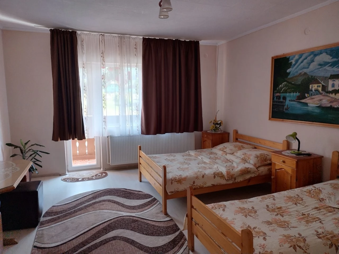 - Camera 1: un pat matrimonial + pat simplu (2 pers.+1), baie proprie cu dus si wc (vizavi cu camera)