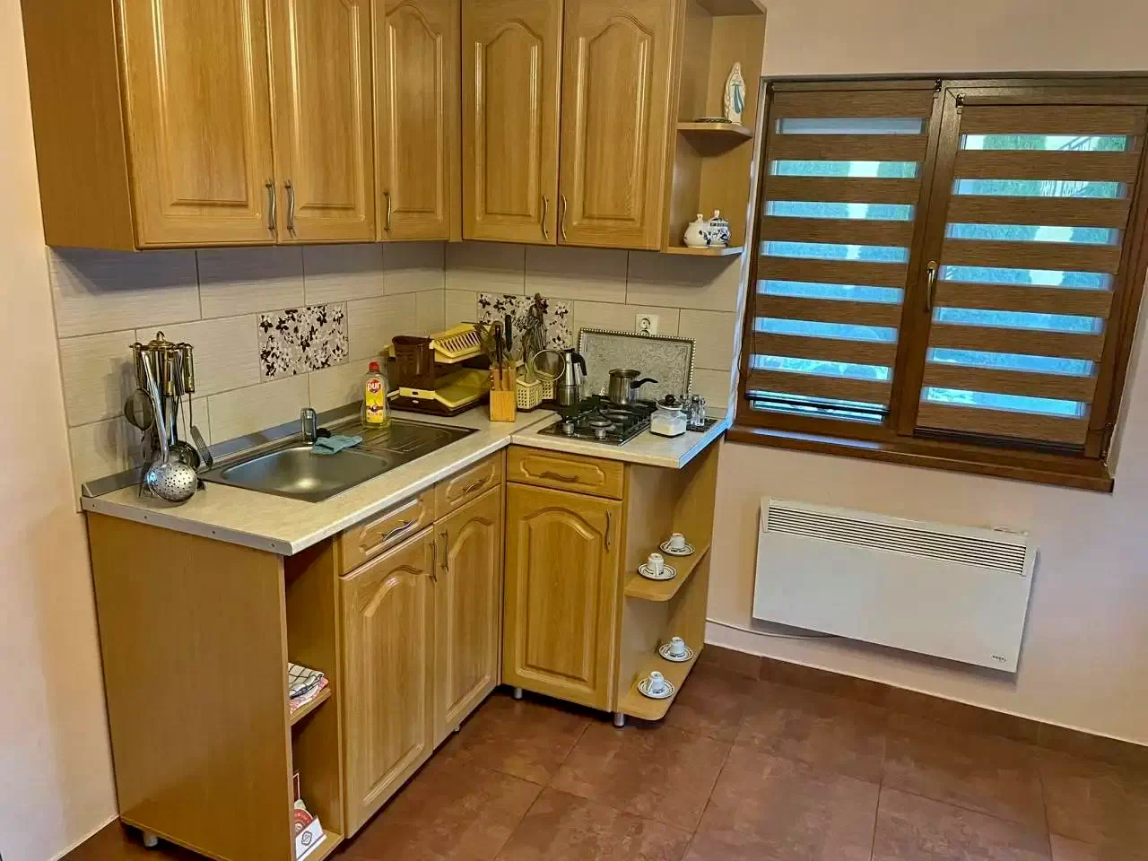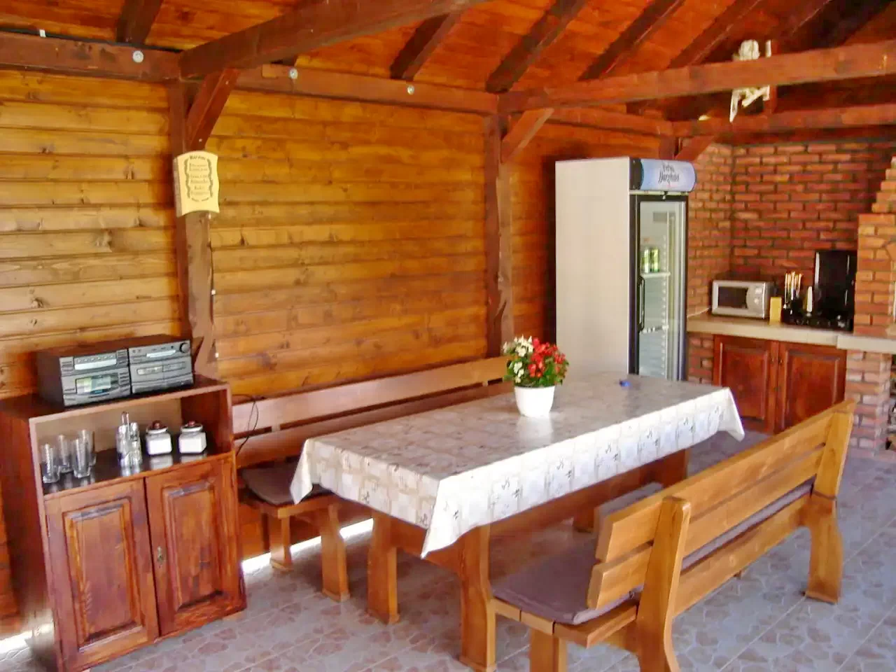 Bucătăria si foișorul sunt utilate cu aragaz, frigider, cuptor cu microunde, filtru de cafea, veselă, tacâmuri, etc.