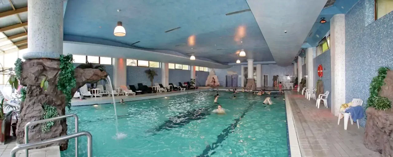 - Oferă o piscină interioară deschisă, o cadă cu hidromasaj, tratamente de masaj, un solar şi o sală de fitness modern echipată si loc de joaca pentru copii, in tot timpul anului.
