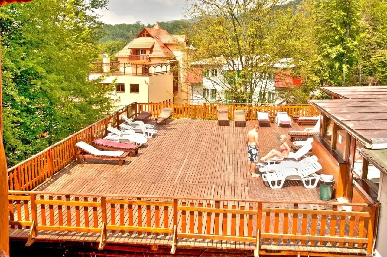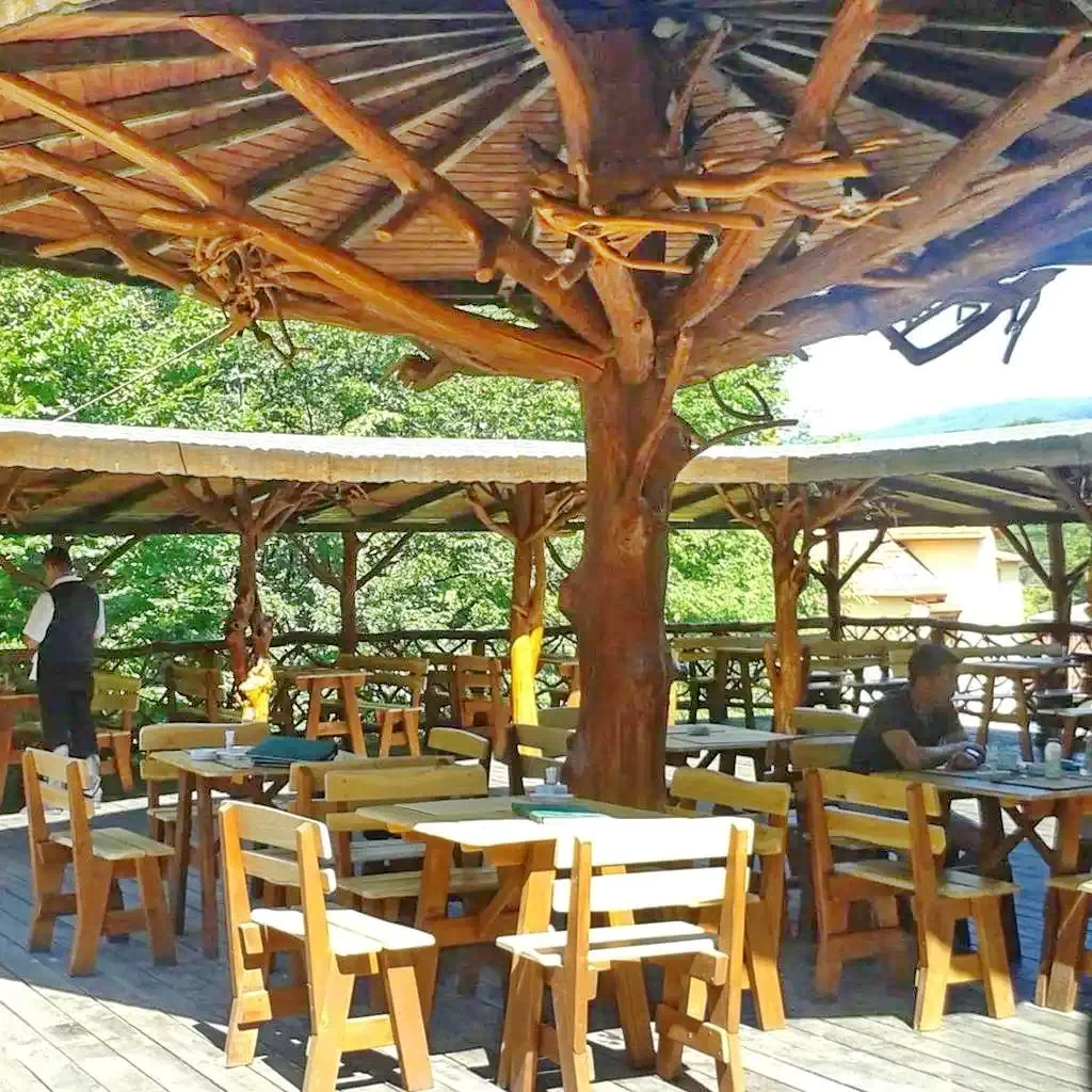 - In incinta hotelului vă puteţi bucura de muzică live şi o gamă largă de mâncăruri tradiţionale romaneşti dar şi din bucătăria internaţională. Barul serveşte băuturi locale şi internaţionale. Pe timpul verii vă puteţi bucura de vremea bună pentru a servi masa pe terasa restaurantului, amenajată în stil rustic, în mijlocul staţiunii.
