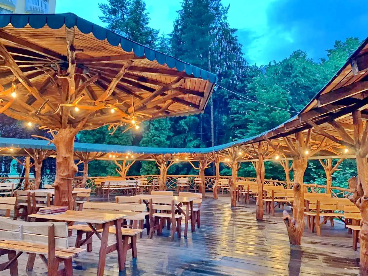 - La Restaurantul hotelului vă puteţi bucura de muzică live şi o gamă largă de mâncăruri tradiţionale romaneşti dar şi din bucătăria internaţională. Pe timpul verii vă puteţi bucura de vremea bună pentru a servi masa pe terasa restaurantului, amenajată în stil rustic, în mijlocul staţiunii.
