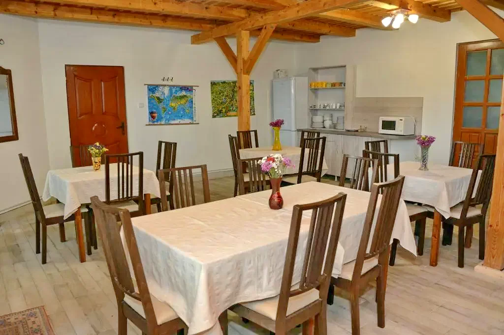 Oaspeții au la dispoziție o sală de mese de 40 de metri pătrați cu o bucătărie mică. Sala de mese poate sa fie si locul ideal al al diferitelor programe comune.