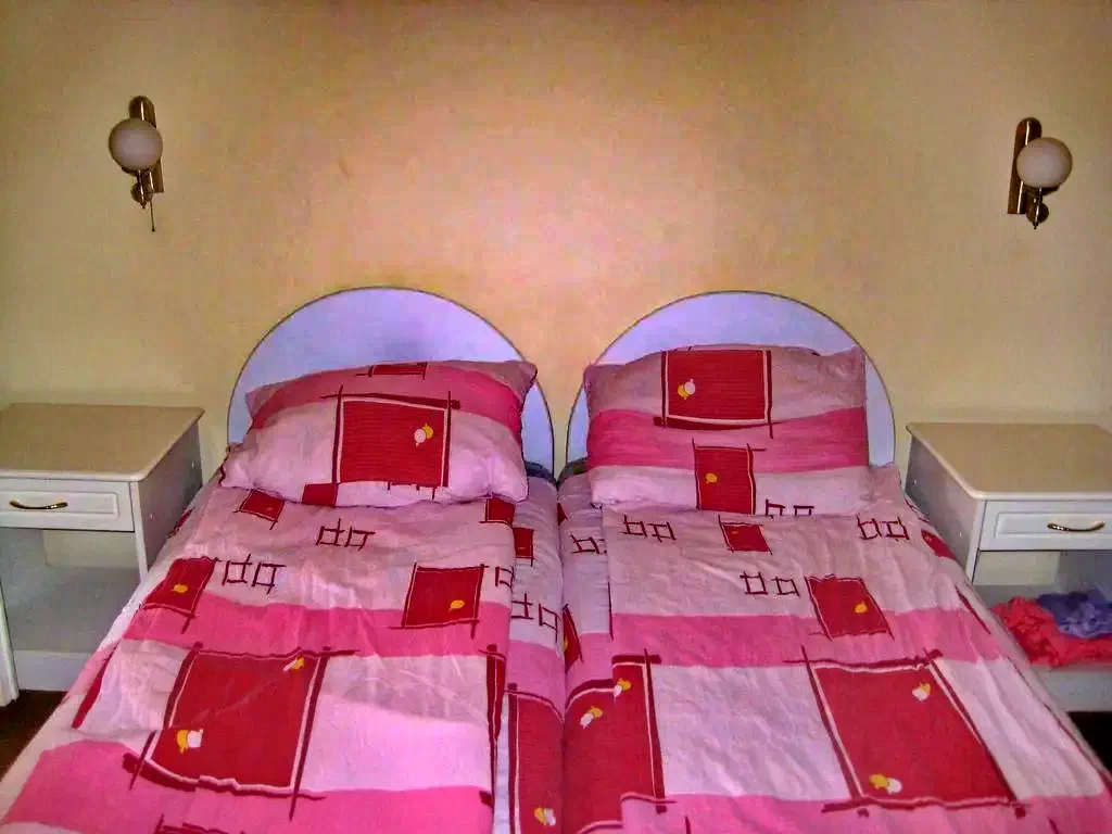 - 2 apartamente cu cate 2 dormitoare si cu intrări separate. Fiecare apartament are o cameră cu pat matrimonial și o cameră cu 2 paturi de o persoană.