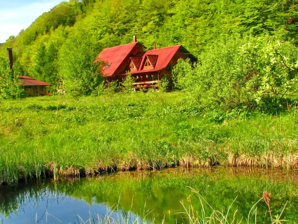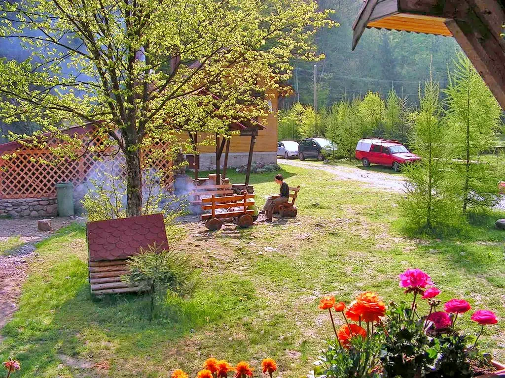 Pensiunea este compusă din două cabane separate, aflate intr-o curte, la altitudinea de 650 m, aproape de râu și de pădure.