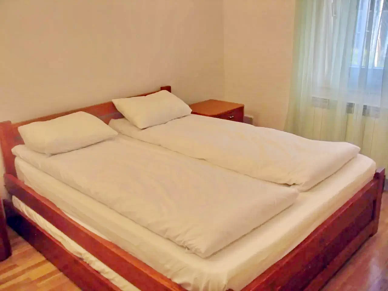 - 2 camere duble cu pat matrimonial, baie proprie cu dus.