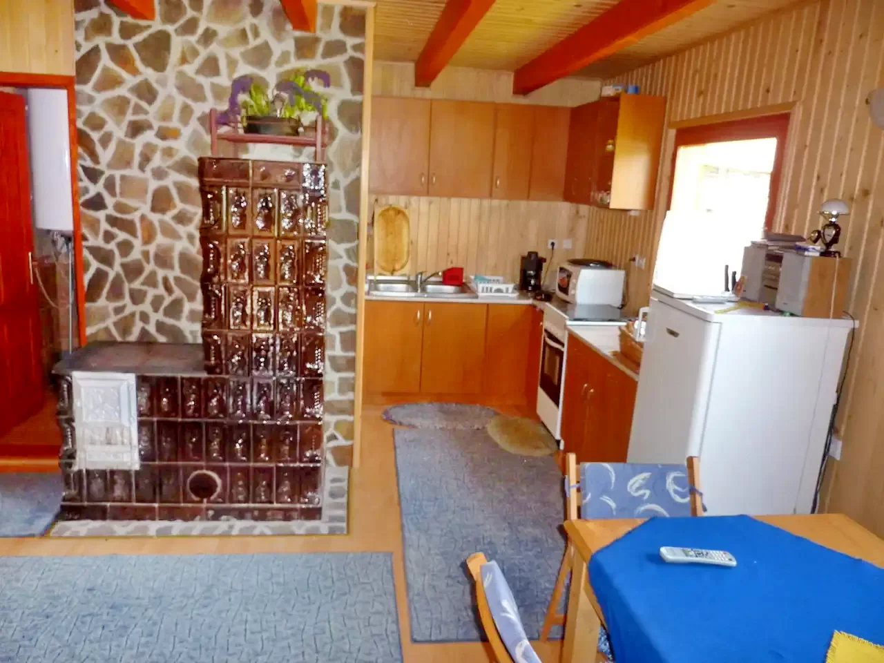- Casa dispune de o bucătărie complet utilată, perfectă pentru pregătirea meselor proprii, fie că este vorba de mic dejunuri în familie sau cine cu prietenii. Bucătăria include aragaz pe gaz, frigider, cuptor cu microunde, prăjitor de pâine, filtru de cafea, oale, tacâmuri și veselă.
