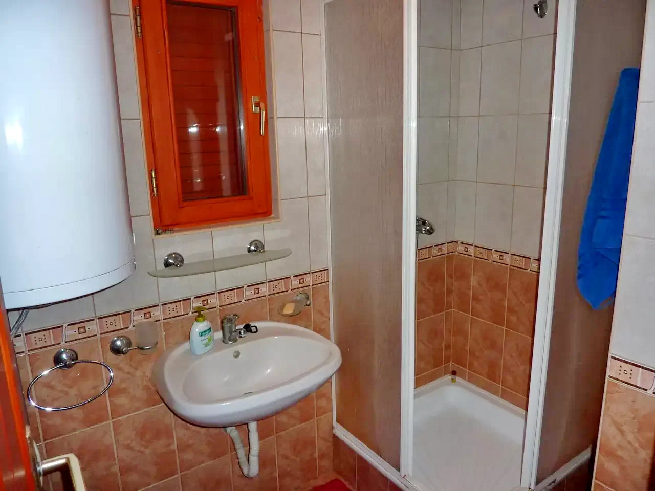 - La parter se află un living-sală de mese spațios, o bucătărie complet utilată, o toaletă separată, o baie cu duș și două camere: una cu două paturi single, cealaltă cu un pat matrimonial, dotată cu televizor.