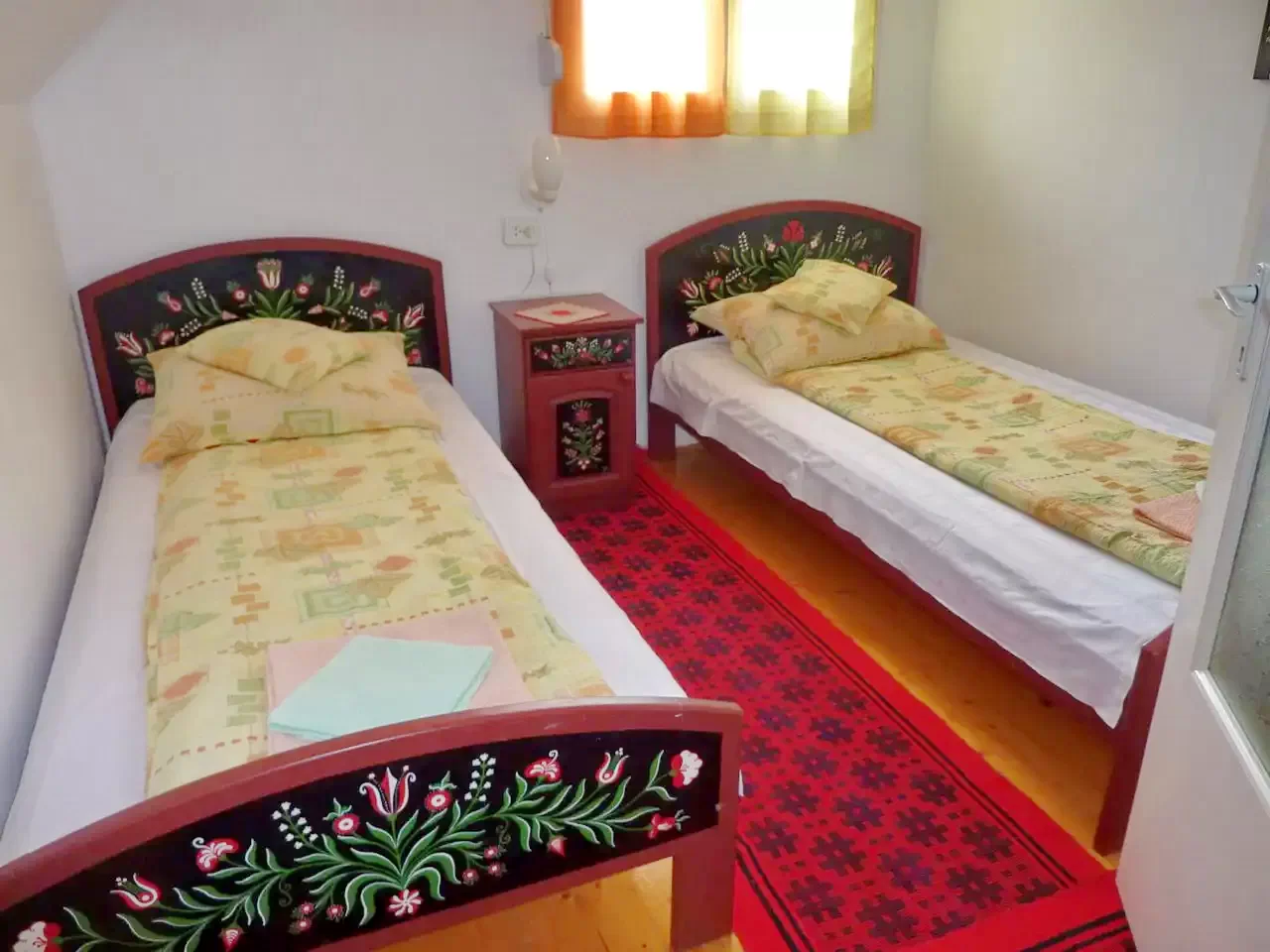 - La etaj, patru camere duble și o baie suplimentară asigură odihnă liniștită. Toate încăperile sunt încălzite individual cu sobă din fontă, garantând o atmosferă caldă și primitoare chiar și în sezonul rece.