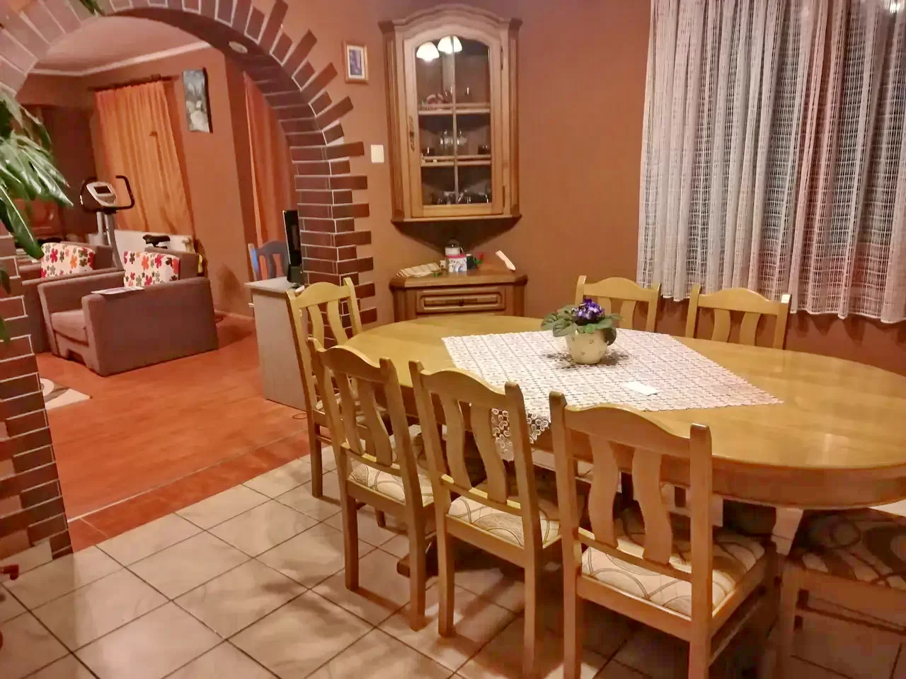 - Sala de mese spațioasă creează o atmosferă prietenoasă pentru mese comune.