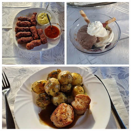 Pensiunea oferă mic dejun și cină, iar o bucătărie complet utilată este disponibilă pentru gătit în regim propriu.