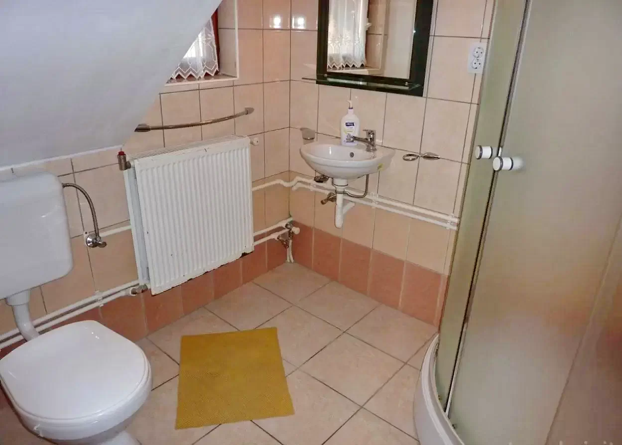 In prima camera sunt doua paturi simple. In cea de a doua camera este un pat simplu. In urmatoarea camera sunt trei paturi simple. Aceste trei camere dispun de o baie comuna. In ultima camera sunt doua paturi simple. Aceasta camera este dotata cu baie proprie. In total: 11 (+2) persoane!