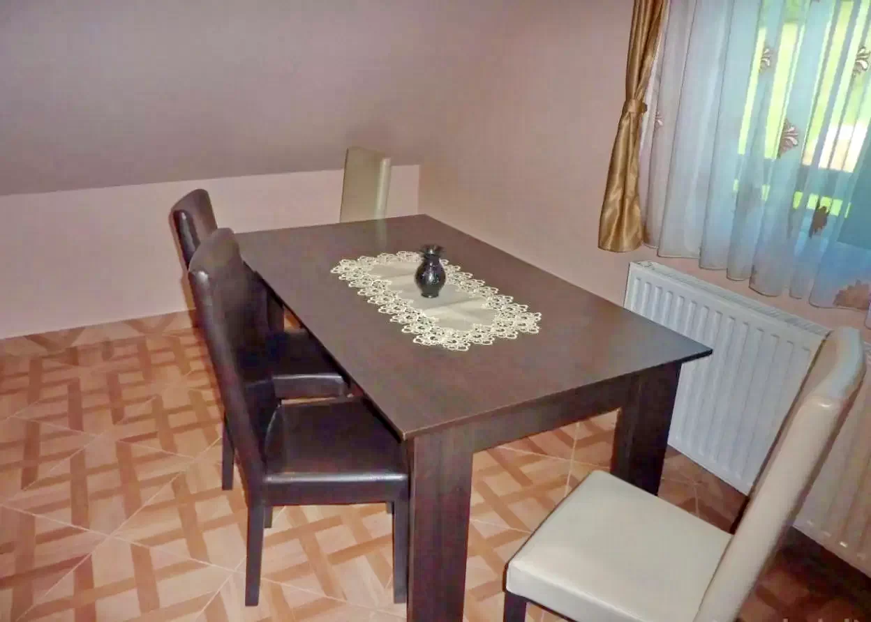 - Bucătăria modernă a cabanei este dotată cu toate cele necesare pentru a pregăti mese delicioase. Aceasta include plită electrică, mașină de spălat vase, frigider, cuptor cu microunde, filtru de cafea, fierbător de ceai, oală sub presiune, precum și oale, tacâmuri și veselă.
