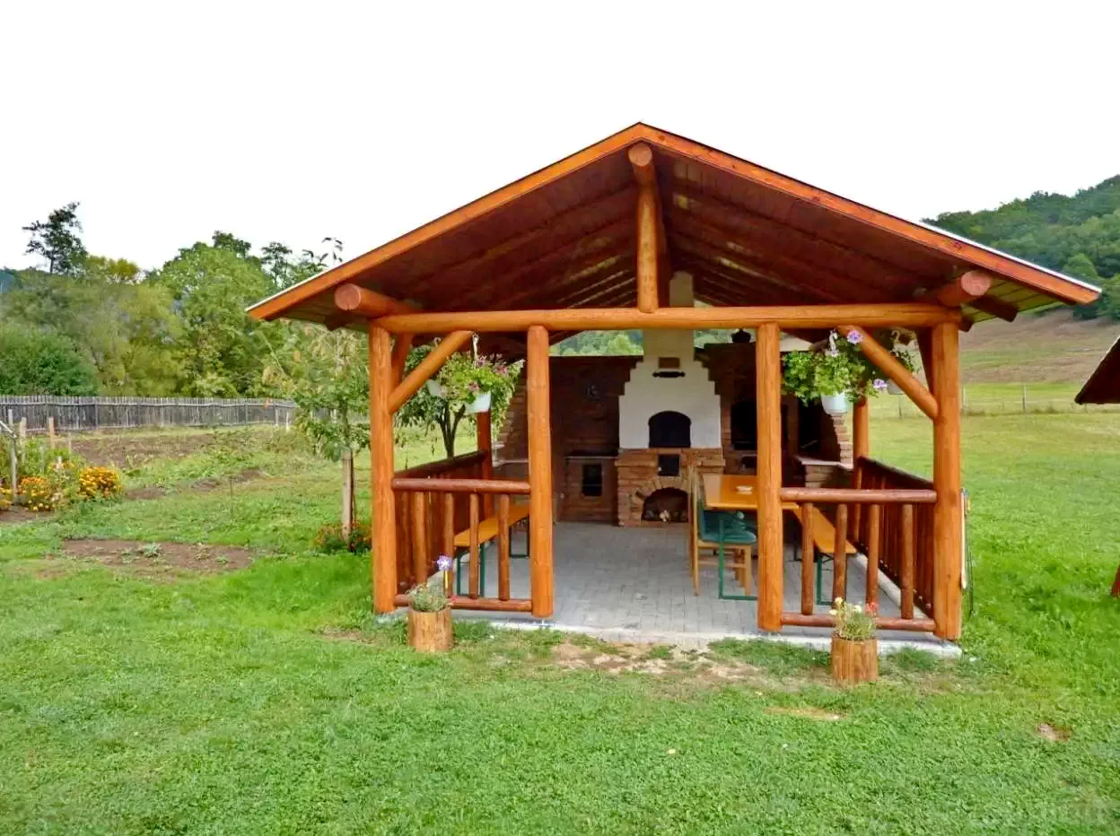 Cazare Revelion Sub Cetate Cabană** | Bucătărie–living, Wi-Fi, încălzire centrală, terasă, curte de 500 m², foișor acoperit, leagăn și piscină pentru copii, cuptor, gratar, ceaun, parcare | 1,9 km de Barajul Zetea, 19 km de pârtiile de schi Harghita Mădăraș