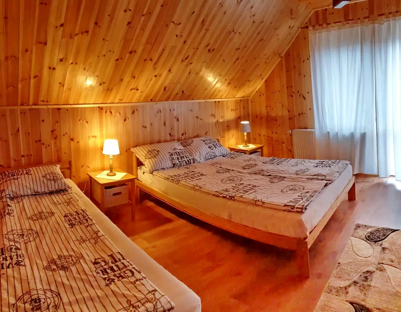 Cabana are o capacitate totală de 13 locuri, fiind ideală pentru grupuri mai mari sau familii. Distribuția camerelor este următoarea: