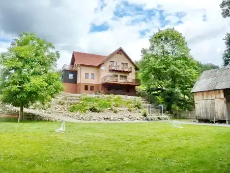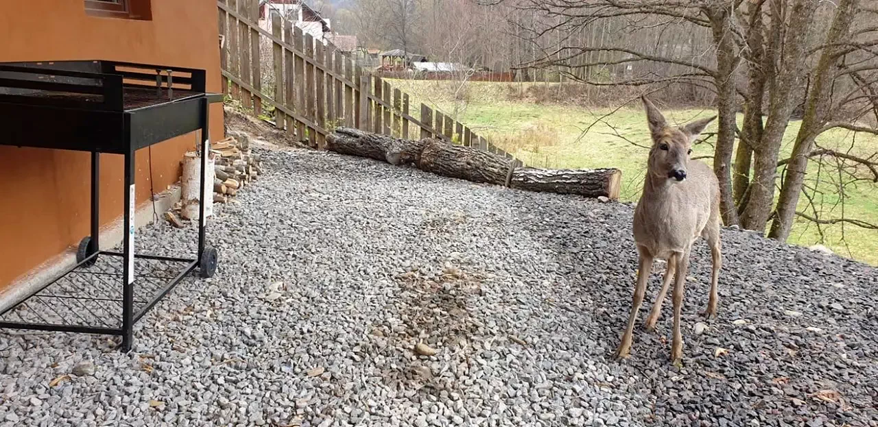 - Amplasată într-un cadru natural pitoresc, cabana oferă liniștea și frumusețea peisajului rural din inima județului Harghita.