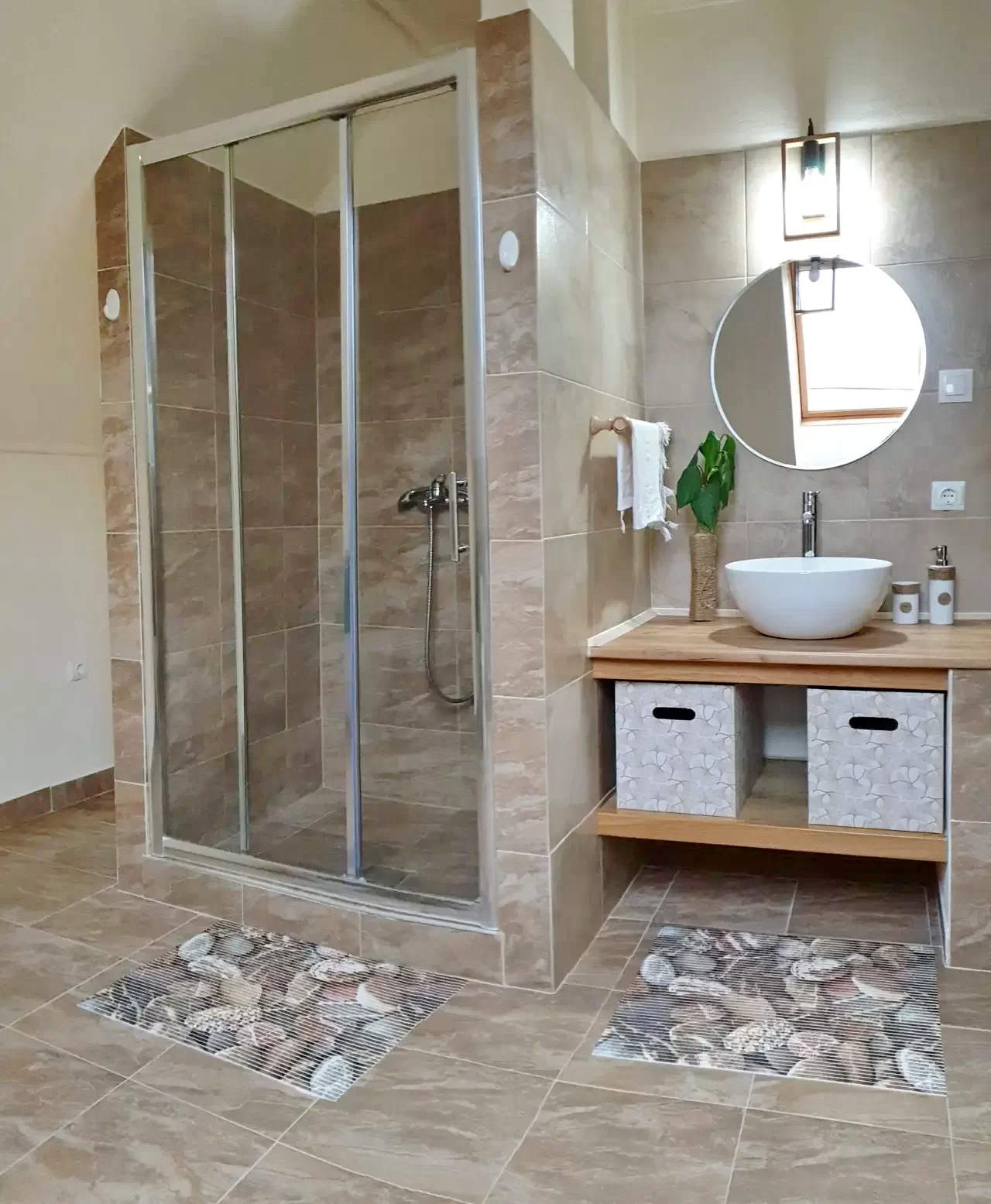 - Cele 4 camere, fiecare cu terasă proprie, sunt completate de 3 băi (2 cu duș, WC și chiuvetă, 1 cu WC și chiuvetă) și un living spațios.