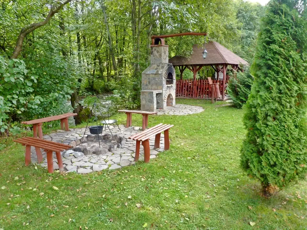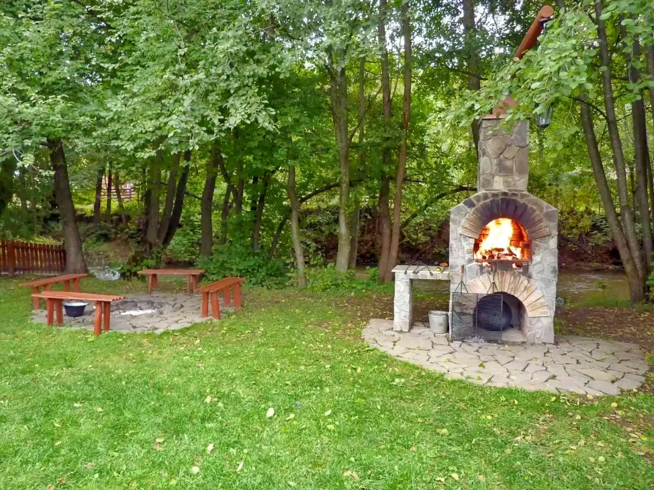 - În curte, un foișor acoperit, cuptor pentru grătar, ceaun, disc și loc de foc oferă oportunități excelente pentru gătit în aer liber, pe malul râului Târnava Mare, transformând fiecare masă într-o experiență memorabilă.