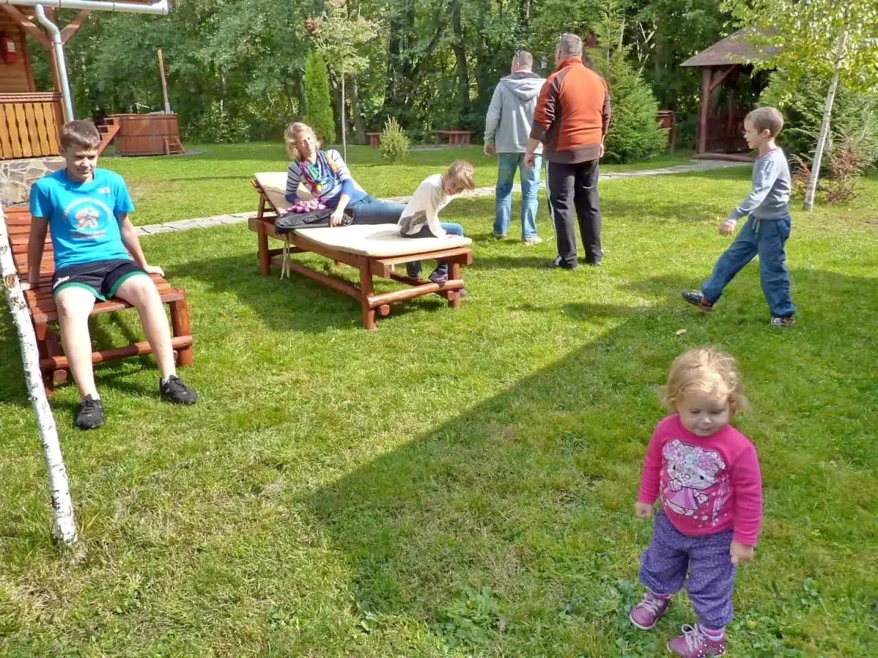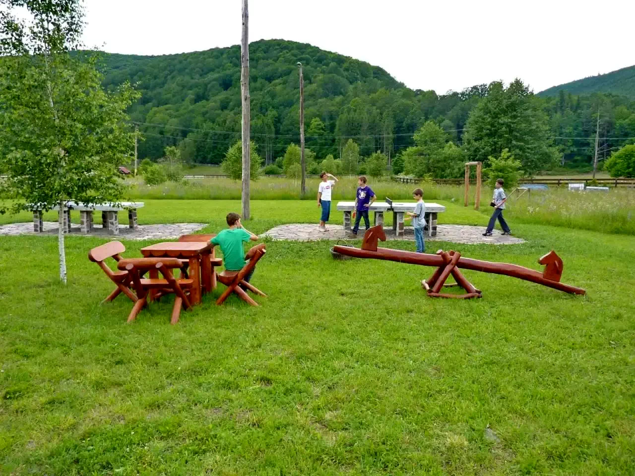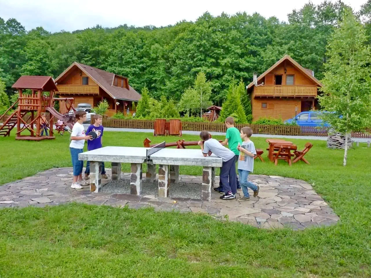 Facilități pentru copii: leagăn, tobogan, groapă cu nisip, lipinka