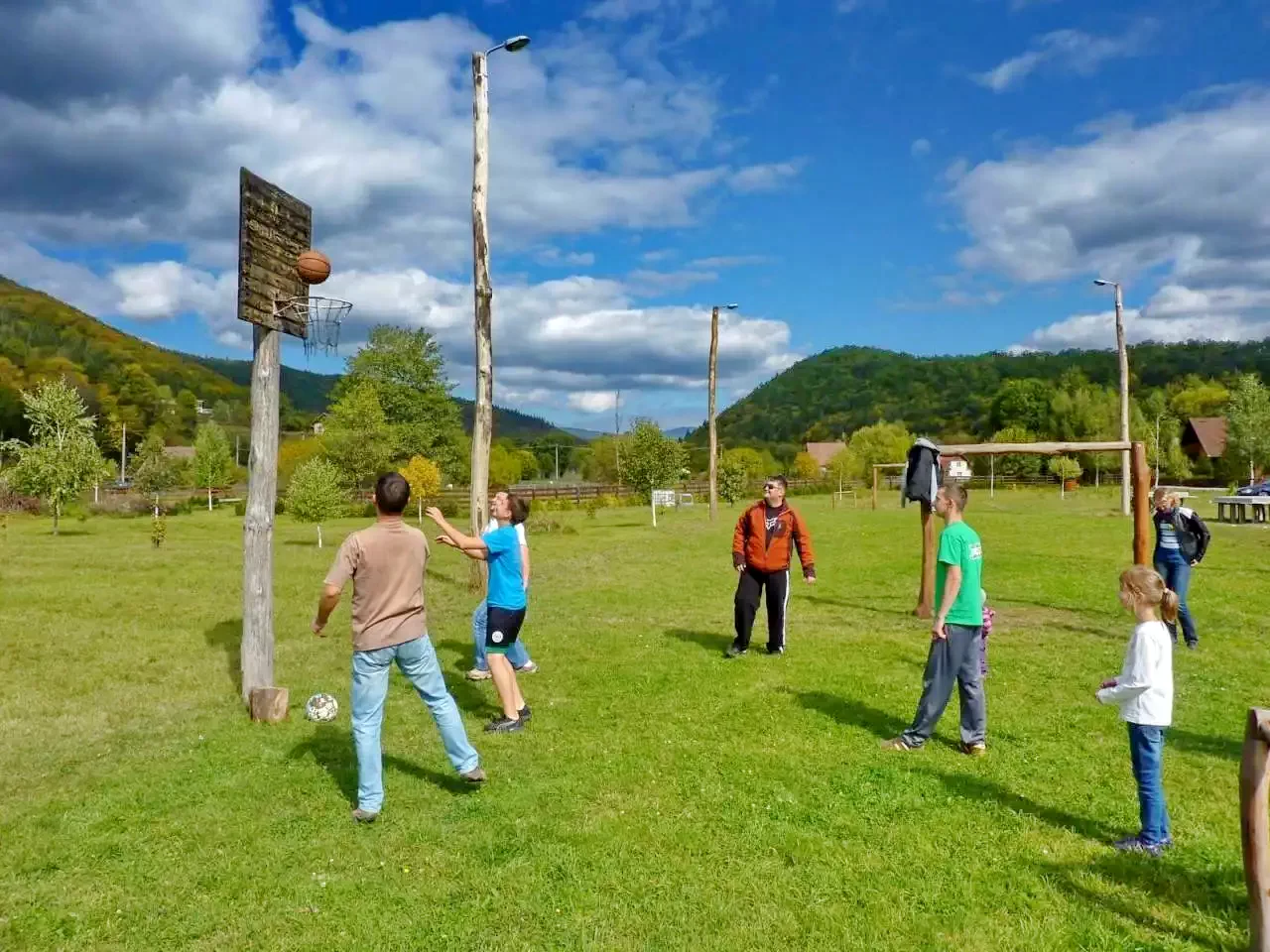 Activități sportive: coș de baschet, masă de ping-pong, teren de fotbal