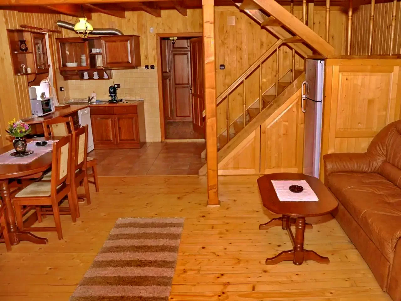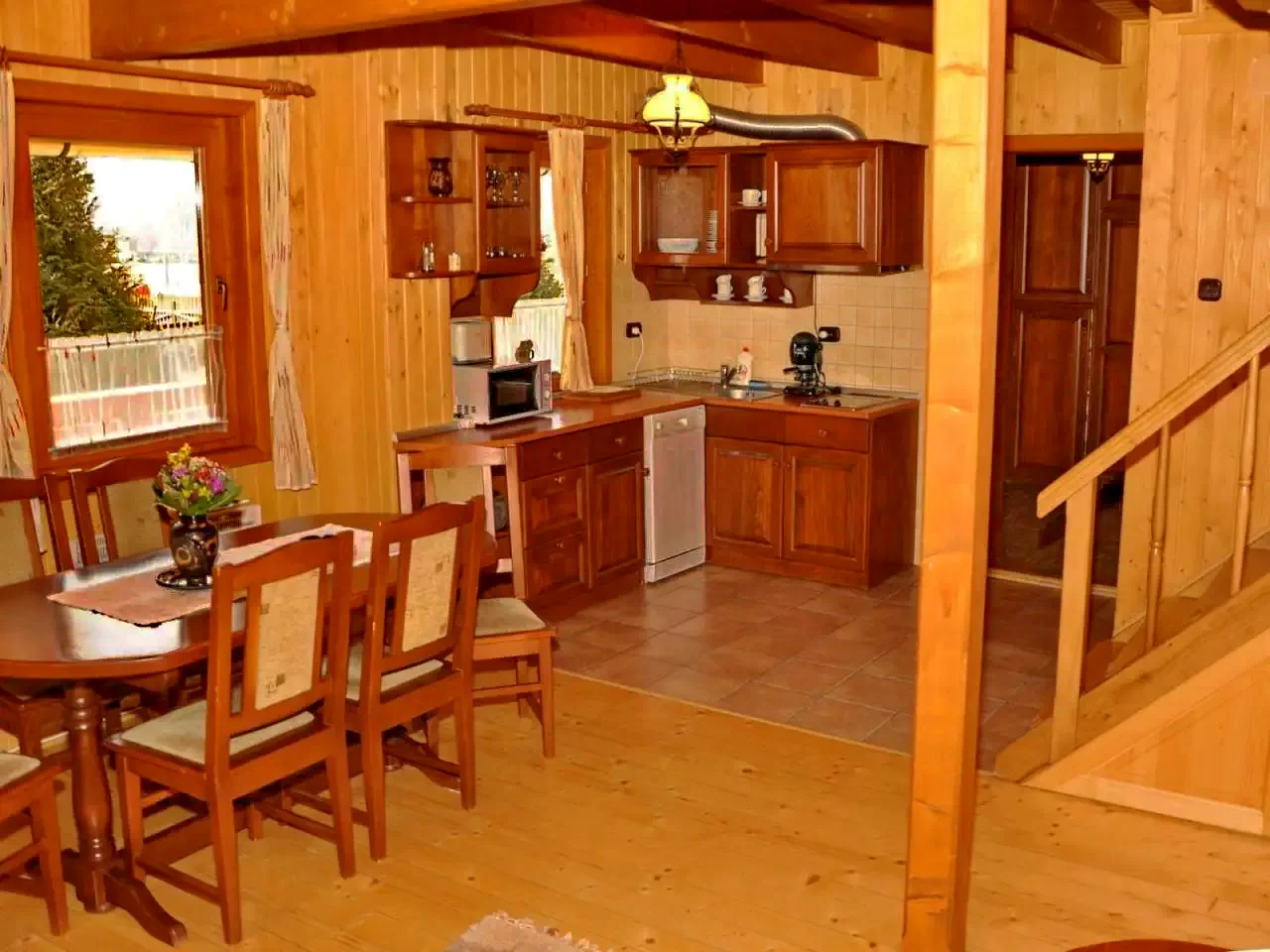 - Bucătăria modernă a cabanei este dotată cu tot ce aveți nevoie pentru a pregăti mese delicioase: plită electrică, mașină de spălat vase, frigider, cuptor cu microunde, filtru de cafea, fierbător de ceai, prăjitor de pâine, oală sub presiune, precum și oale, tacâmuri și veselă.