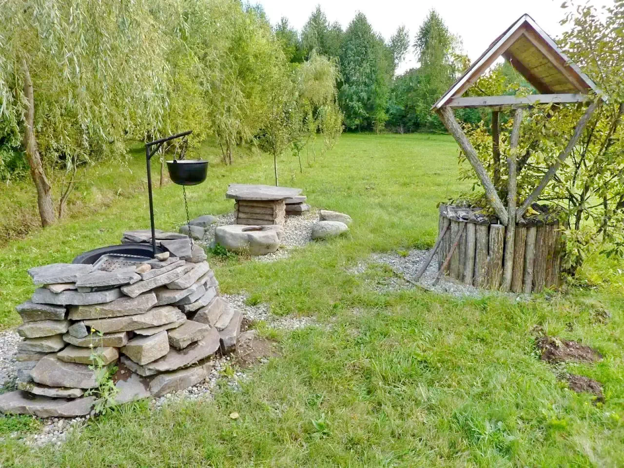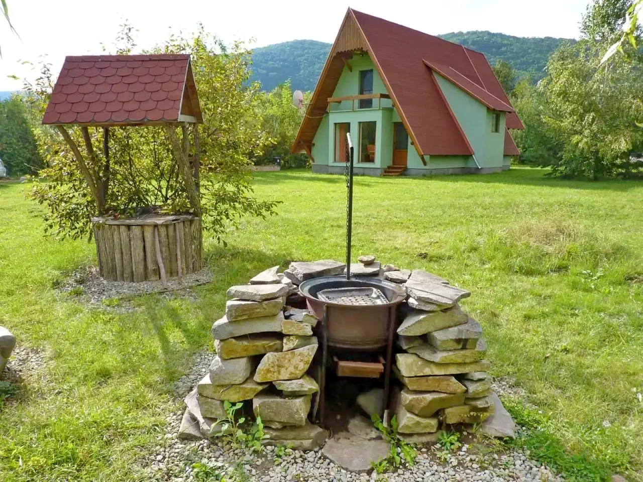 Gătit în aer liber: cuptorul pentru friptură, ceaunul și focul în aer liber permit prepararea de gulaș, grătare sau alte mâncăruri tradiționale, oferind o experiență autentică.