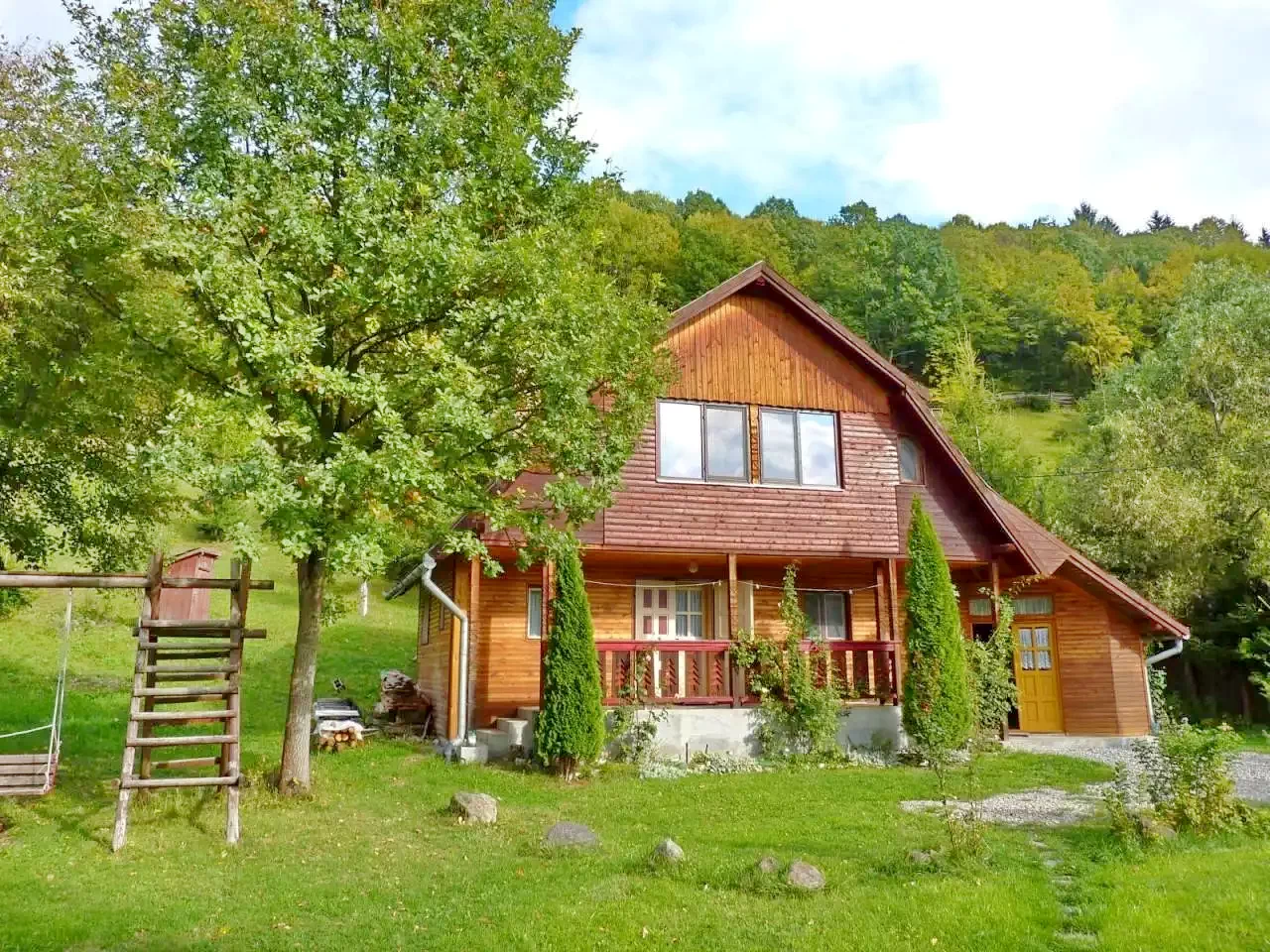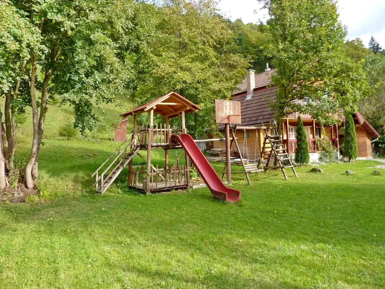Mediu prietenos pentru copii: curtea de 5000 m² include un loc de joacă cu leagăn, tobogan, cățărătoare și nisiparniță, garantând distracție pentru cei mici.