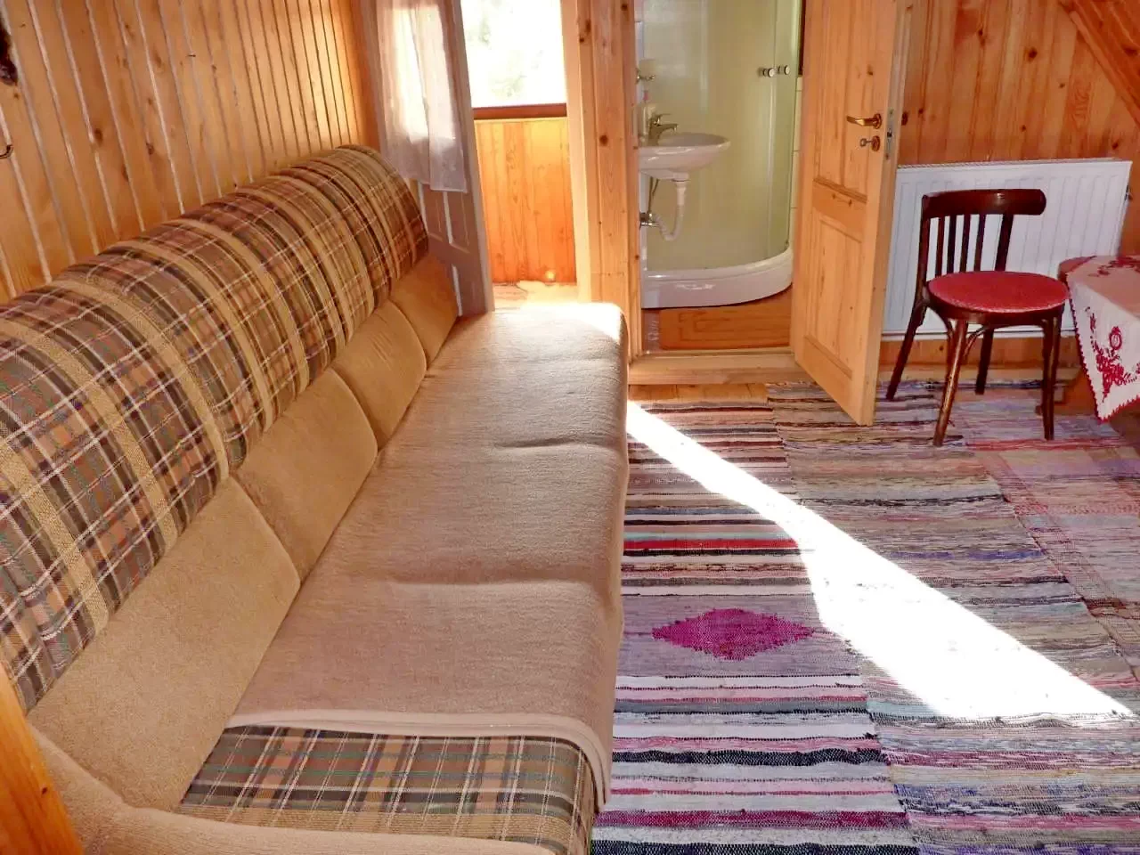 Camera 1: 2 paturi matrimoniale (4 persoane), cu baie proprie (duș, WC, chiuvetă).