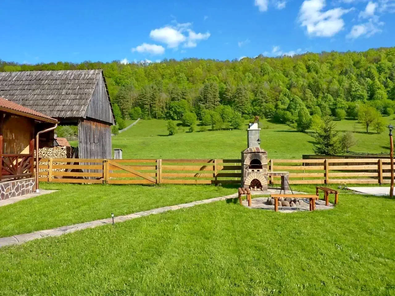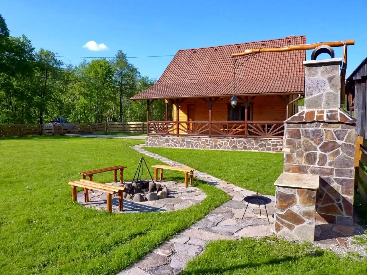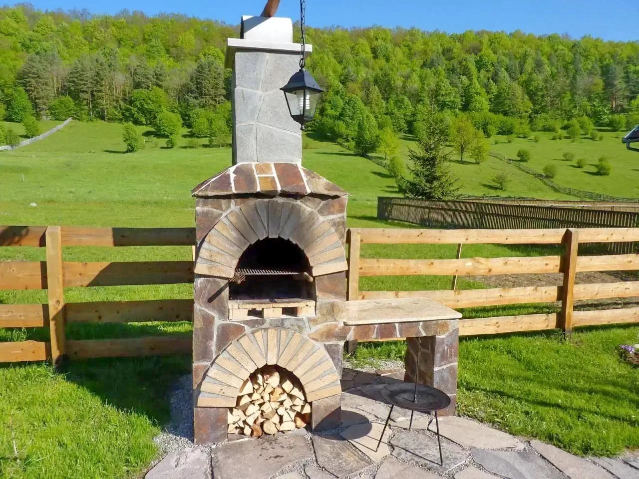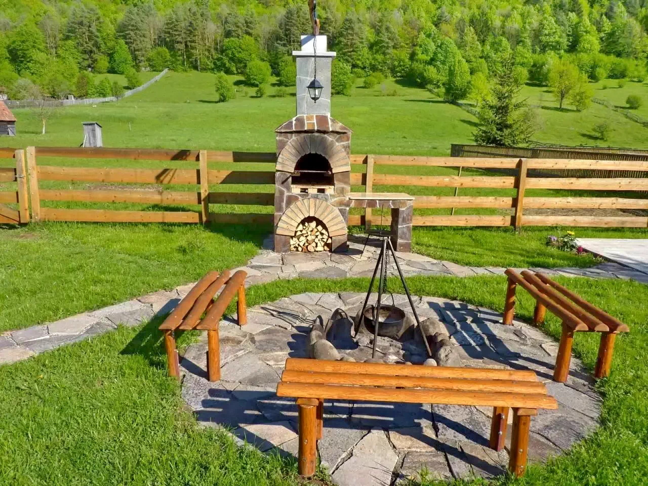 - În curte, oaspeții pot folosi cuptorul pentru friptură, ceaunul, discul și focul în aer liber, perfecte pentru grătare sau mese tradiționale, care adaugă un farmec aparte serilor petrecute în natură.