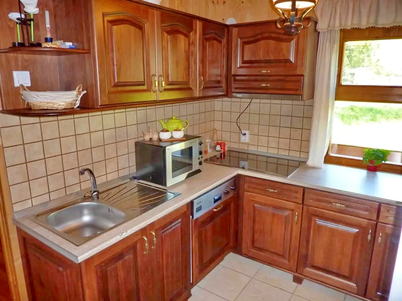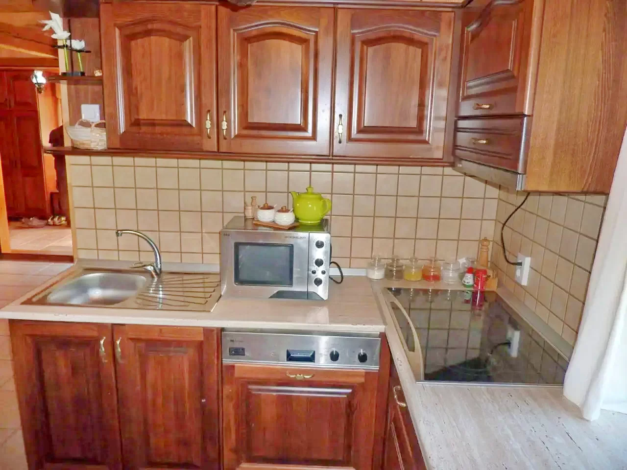 - Casa dispune de o bucătărie complet utilată, perfectă pentru pregătirea meselor în regie proprie, cu plită electrică, frigider, mașină de spălat vase, cuptor cu microunde, prăjitor de pâine, filtru de cafea, fierbător de ceai, oală sub presiune, precum și oale, tacâmuri și veselă.