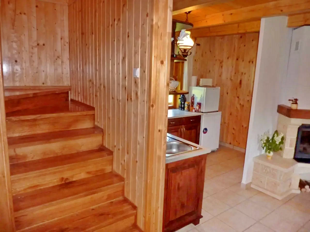 - La parter se află un living-sală de mese, o bucătărie complet utilată, o toaletă separată și o baie, iar la etaj trei camere, o altă toaletă și o baie asigură confortul oaspeților.