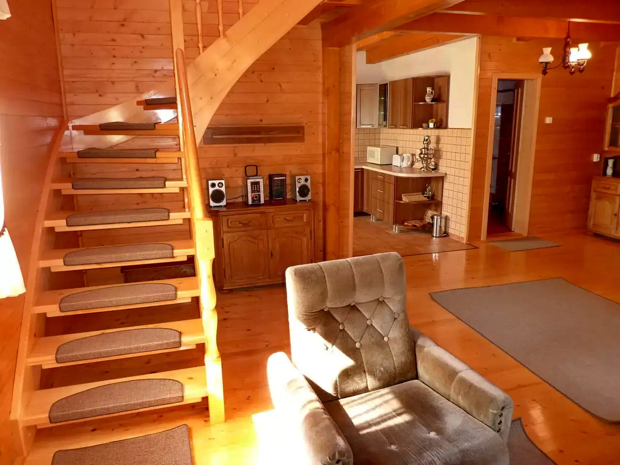 - Bucătăria complet utilată a cabanei permite oaspeților să pregătească mese independente, ideale pentru mic dejunuri în familie sau cine cu prietenii.