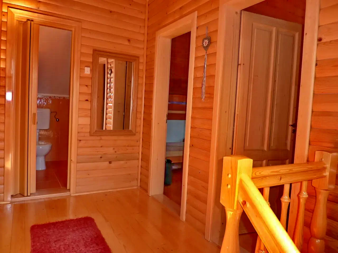 - La etaj, patru dormitoare și un WC separat oferă spațiu pentru odihnă: două camere cu câte un pat matrimonial, o cameră cu un pat matrimonial și un pat supraetajat, iar a patra cameră cu două paturi single.