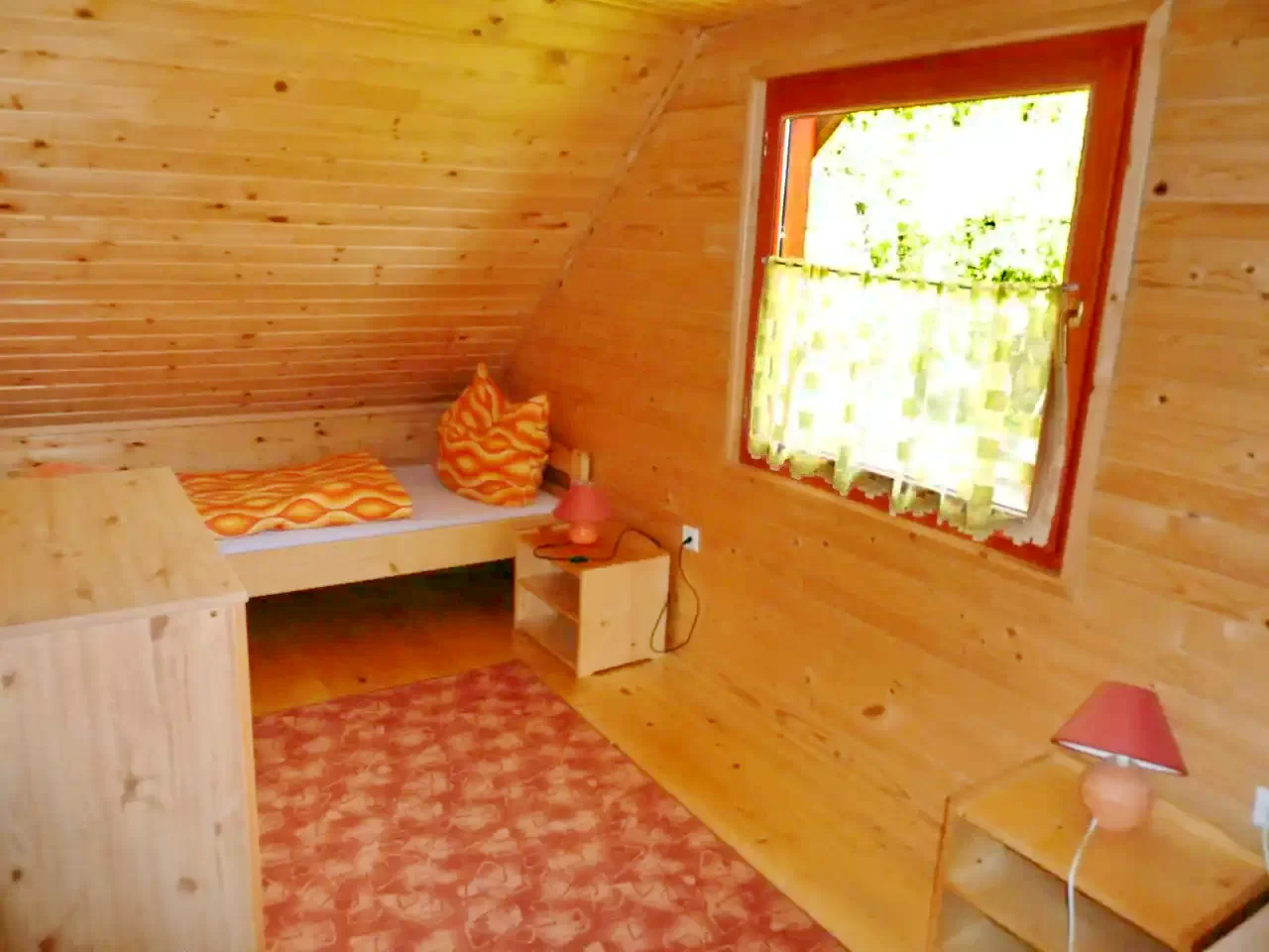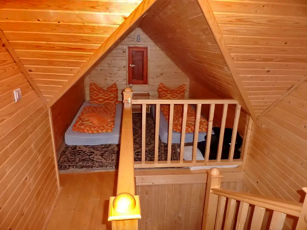 - La etaj, două camere triple (cu un pat matrimonial și un pat single fiecare) și o baie stau la dispoziția oaspeților.