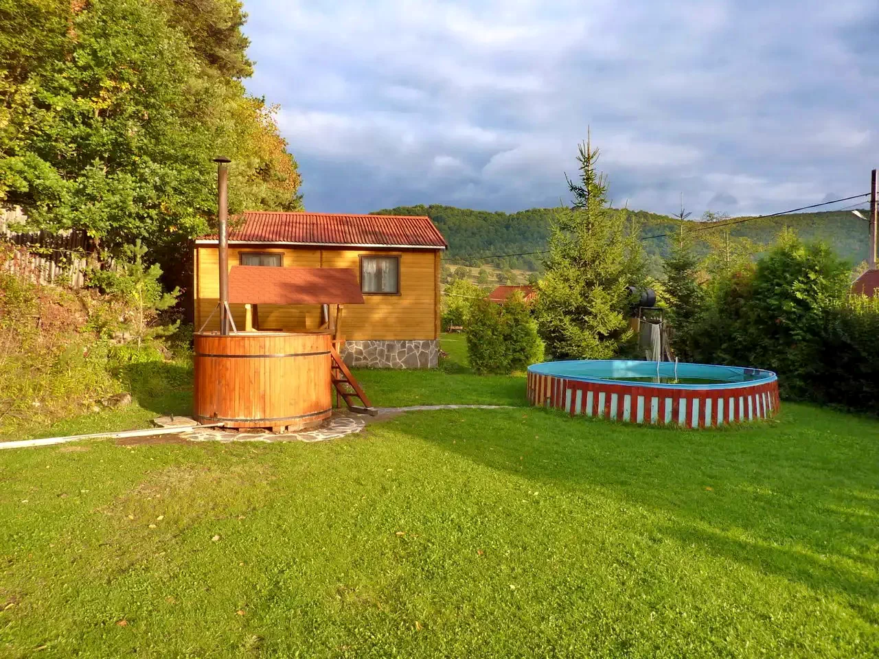 Cazare Revelion Sub Cetate Cabană | Bucătărie, filegorie, mobilier de grădină, piscină pentru copii, ciubăr, grătar, ceaun, parcare în curte | 1,5 km Barajul Zetea, 10 km Pârtia de schi Vărșag, 55 km Salina Praid