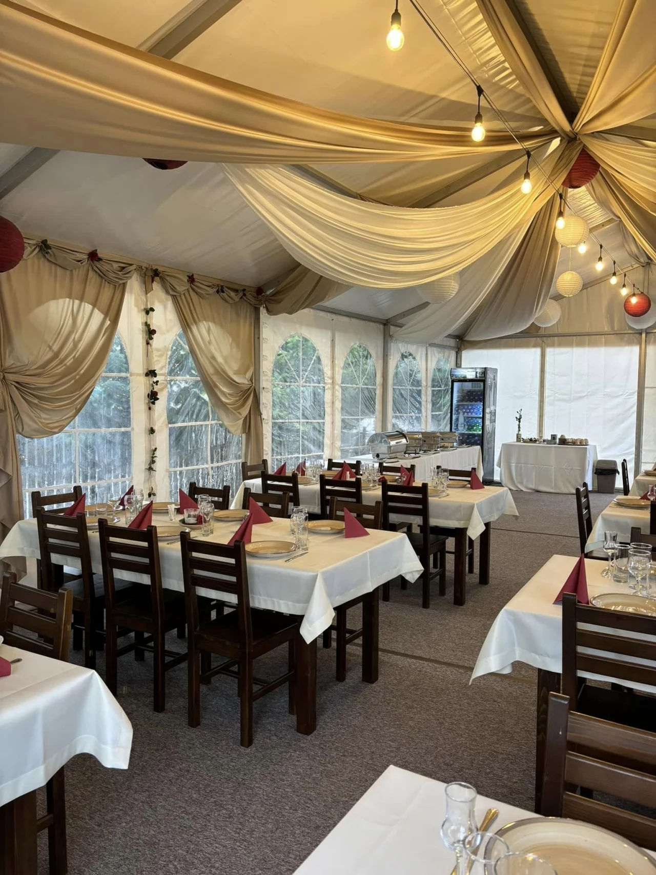 - Sunt disponibile următoarele săli: Sala de Evenimente și sala de mese.