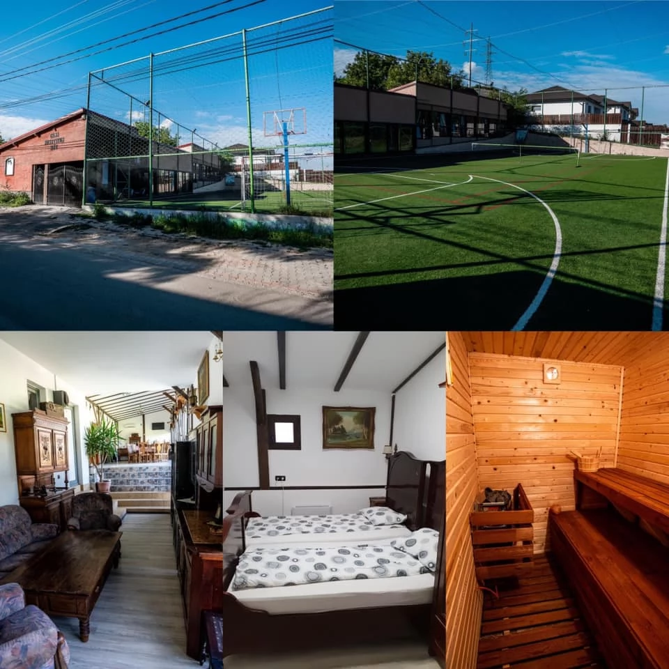 Sport: teren multisport pentru tenis, volei, baschet, ping-pong și minifotbal, potrivit pentru competiții între prieteni sau familie.