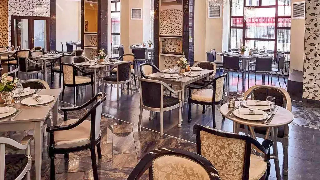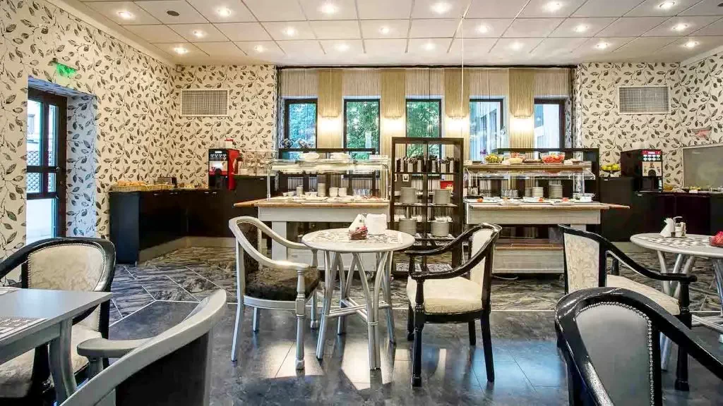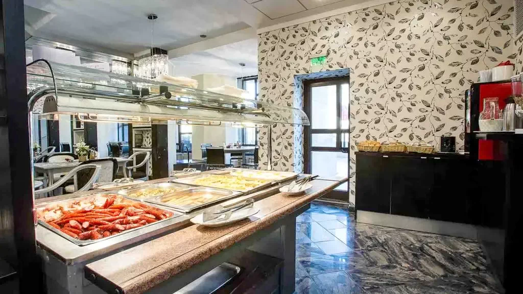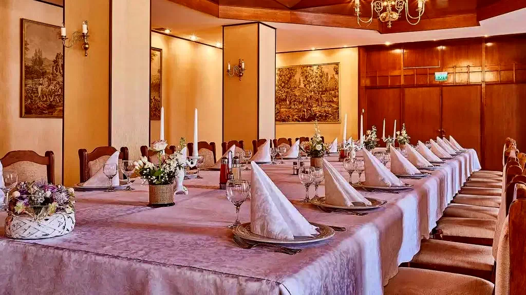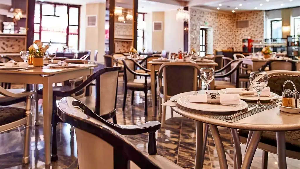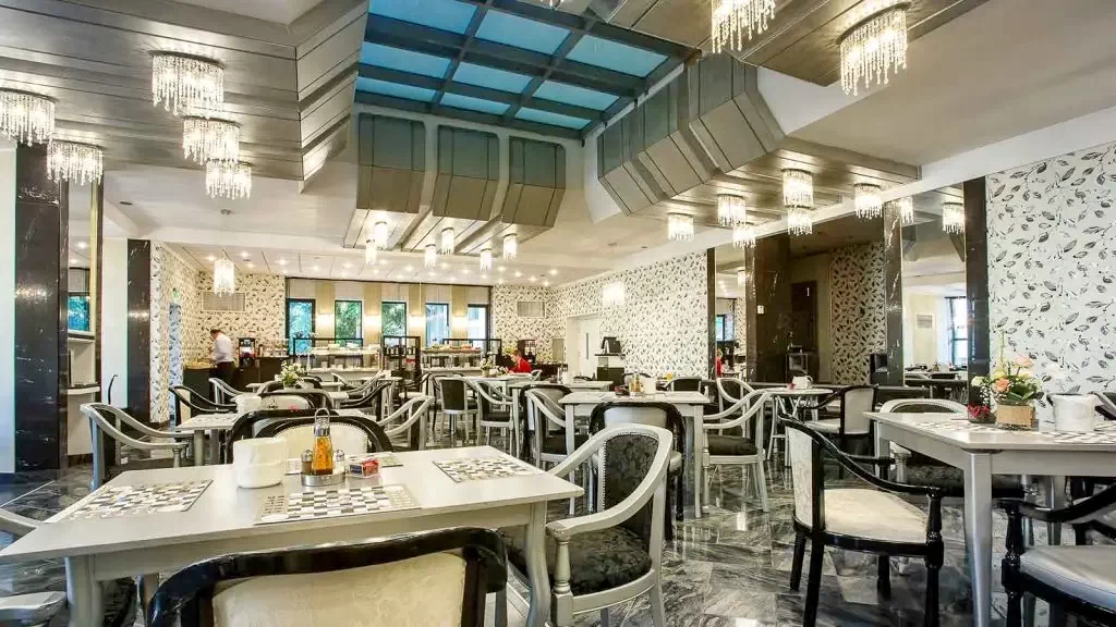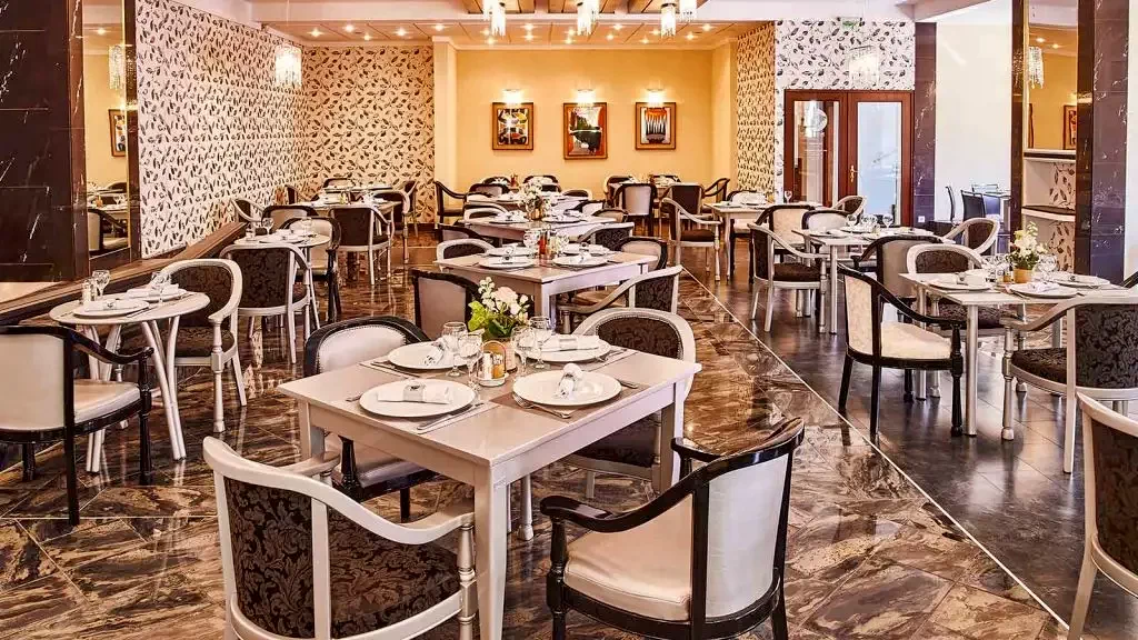 - În incinta hotelului, restaurantul vă așteaptă cu un meniu à la carte, care cuprinde numeroase specialități din mai multe bucătării ale lumii. Restaurantul este unul dintre cele mai selecte locuri din oraș.