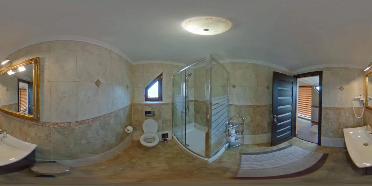 - Fiecare cameră este echipată modern, cu baie privată, televizor și frigider.